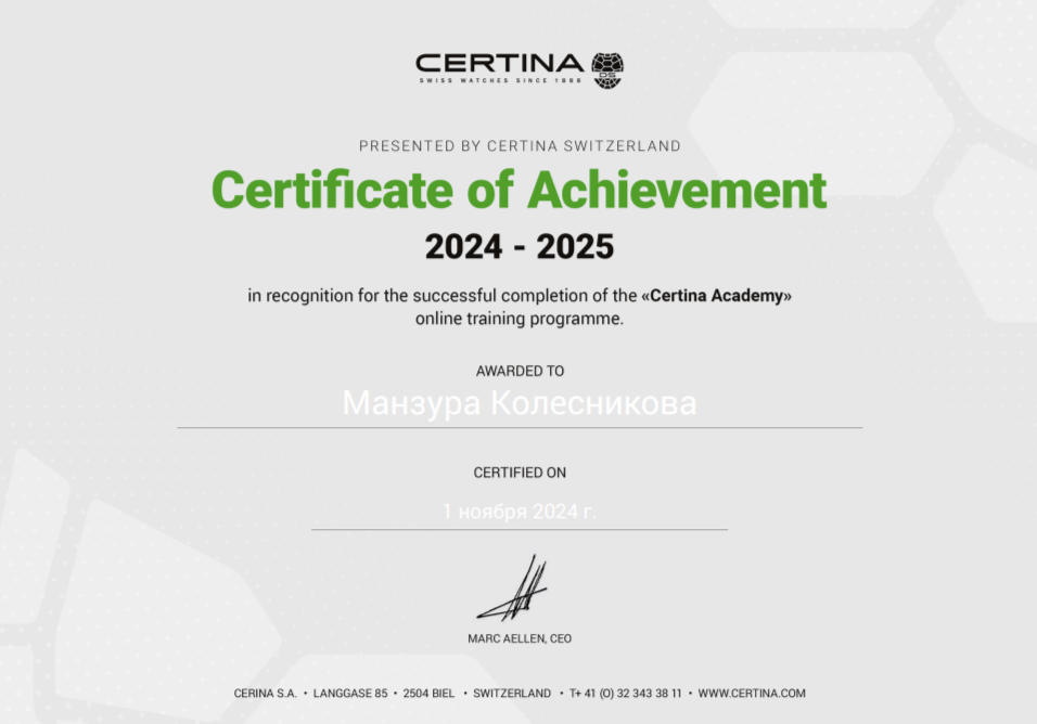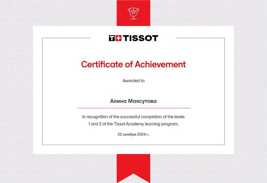 Наши консультанты проходят обязательную сертификацию у ведущих производителей часов, таких как Tissot, Longines, Rado, Certina, Hamilton, Mido и Casio. Это подтверждает их высокий уровень профессионализма и компетенций, необходимых для работы с оригинальной продукцией.