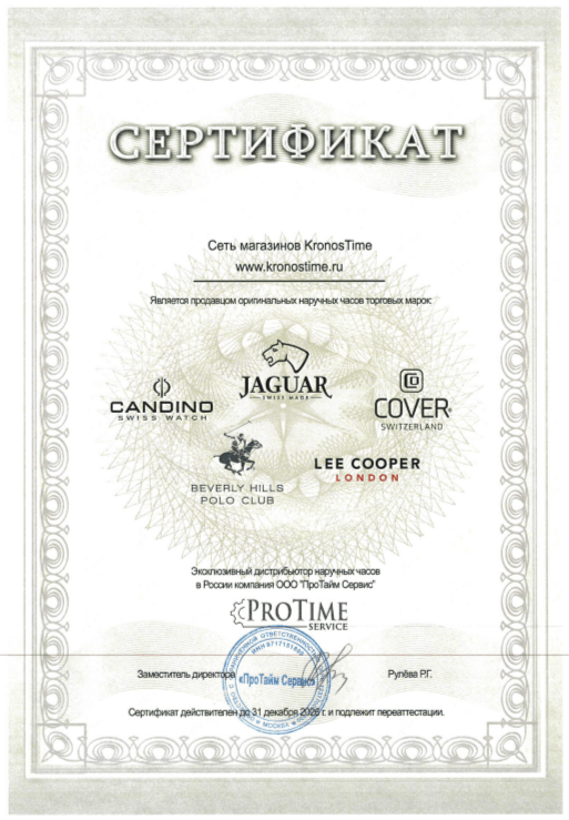 Наша компания является официальным дилером более 100 известных брендов часов, включая премиальные марки TAG Heuer, Breitling, Longines и другие. Мы предоставляем официальные сертификаты, которые подтверждают право на реализацию оригинальной продукции и гарантируют подлинность каждого проданного товара.