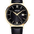 Мужские швейцарские часы Adriatica Pairs A1294.1264Q имеют кварцевый механизм с высокой точностью. Корпус часов изготовлен из нержавеющей стали золотистым PVDPVDУльтратонкое покрытие наносится в технике вакуумного напыления, сочетает в себе нитрид титана особой прочности со слоем золота или оксида хрома. Несёт в себе декоративную или защитную функцию. покрытием. Сапфировое стеклоСапфировое стеклоПрочный и надёжный материал из кристалла сапфира синтетического происхождения, характеризующийся особой твёрдостью и устойчивостью к царапинам и повреждениям. устойчивое к появлению царапин, обладающее высокой прозрачностью, защищает черный циферблат, на котором расположилось окошко даты в районе 3 часа, а метки этих часов в виде штрихов и римских цифр VI и XII. Кожаный черный ремешок со стандартной застежкой обеспечивает комфортное ношение и подчеркивает стильный внешний вид. Надежный кварцевый механизм с калибром RONDA 715 гарантирует точность времени, а водозащита WR 30 (3 ATM) делает эти часы практичным выбором для повседневного использования.