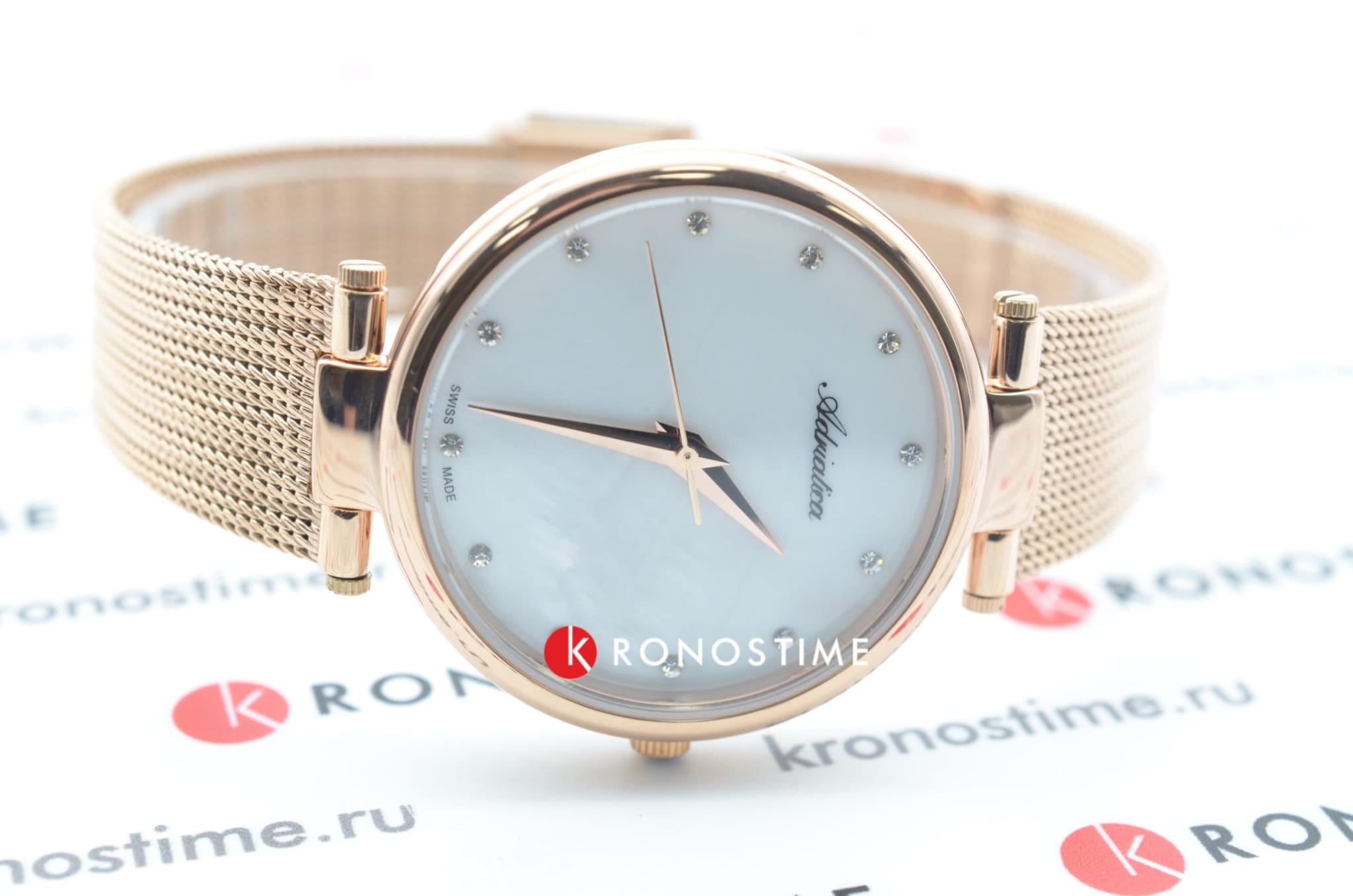 Женские часы с минеральным стеклом Adriatica A3689.914FQ, кварцевый механизм с высокой точностью. Класс водозащиты: 30 метров, позволит защитить корпус от случайных брызг или капель дождя. Корпус часов изготовлен из стали, золотистого цвета.