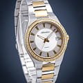 Женские швейцарские часы с минеральным стекломМинеральное стеклоМинеральное стекло представляет собой искусственно выращенный минерал кварца. Такое стекло отличается особой устойчивостью к повреждениям и царапинам. Уступает по некоторым качествам сапфировому стеклу. Adriatica A3804.2113QZ, кварцевый механизм Ronda 515, работающим от батарейки с высокой точностью.Класс водозащиты: 50 метров, позволит защитить корпус от случайных брызг или капель дождя. Корпус и браслет часов изготовлен из стали с PVD-покрытиемIP-покрытиеМетод ионного напыления. Демонстрирует повышенную устойчивость к истиранию, окислению и химическим веществам. Под воздействием высокого давления и температуры около 1500°C молекулы металла надёжно соединяются с частицами корпуса часов..Окошко даты находится в положении 3 часа.Стальной браслет на раскладной застёжкеРаскладная застёжкаТакой тип застёжки используется только на браслетах из металла. Она никогда не раскрывается полностью, происходит разделение на 2 и более частей. Раскладывающая застёжка снизит вероятность потери часов к минимуму.. Стрелки с люминесцентным покрытиемЛюминесцентное покрытиеПозволяет считывать показания времени в темноте. Производители наносят на стрелки, часовые индексы, безель или поверхность циферблата светонакопительный состав, дающий холодное свечение..БезельБезельВнешний ободок, закрепляющий стекло. В спортивных часах так называется поворотное кольцо с делениями на циферблате, выполняет роль таймера – замеряет отрезки времени на шкале. Неподвижный безель – элемент декора. Однонаправленно вращающийся безель на дайверских часах позволяет фиксировать моменты погружения и выныривания на поверхность. с PVD-покрытиемPVDУльтратонкое покрытие наносится в технике вакуумного напыления, сочетает в себе нитрид титана особой прочности со слоем золота или оксида хрома. Несёт в себе декоративную или защитную функцию. инкрустирован цирконами.