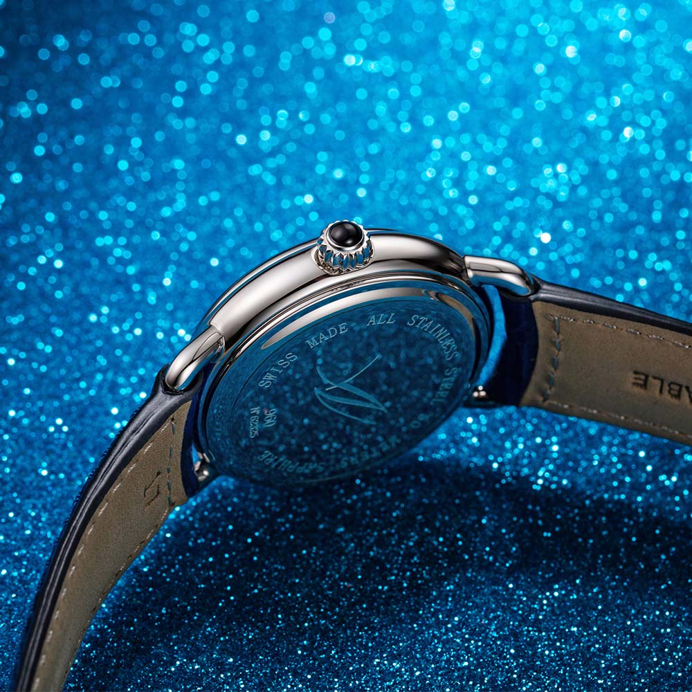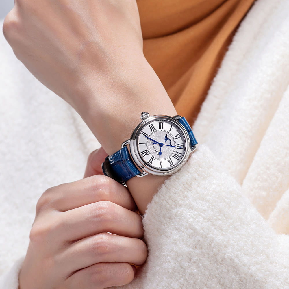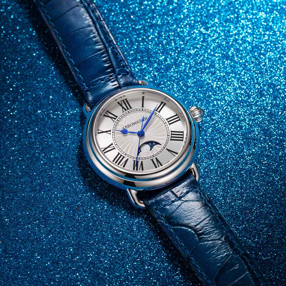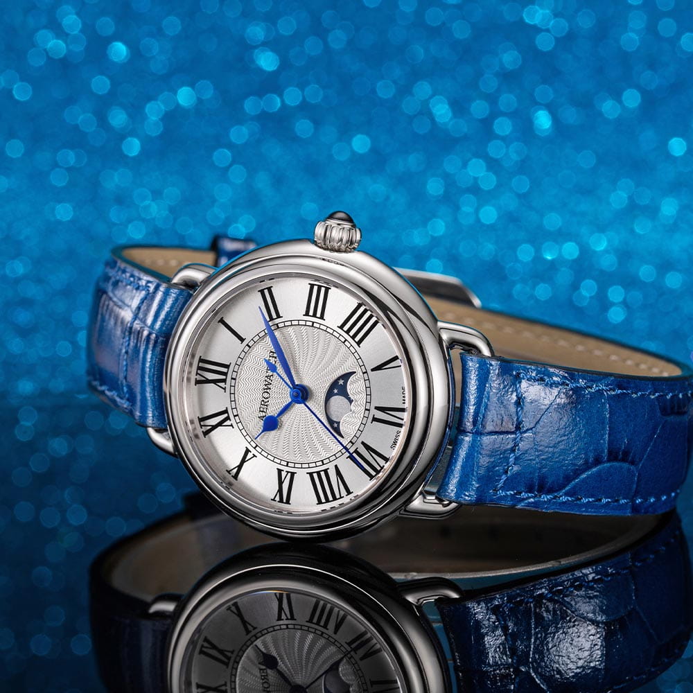 Женские швейцарские часы AEROWATCH 1942 43960 AA03, кварцевый механизм с высокой точностью. Сапфировое стеклоСапфировое стеклоПрочный и надёжный материал из кристалла сапфира синтетического происхождения, характеризующийся особой твёрдостью и устойчивостью к царапинам и повреждениям. устойчивое к появлению царапин, обладающее высокой прозрачностью. Корпус изготовлен из нержавеющей стали.Серебристый циферблат с гильоше в центральной части украшен римскими цифрами и индикацией фаз луны на 6 часах. Класс водозащиты: 50 метров, позволит защитить корпус от случайных брызг или капель дождя. Кожаный ремешок на стандартной застежке.