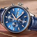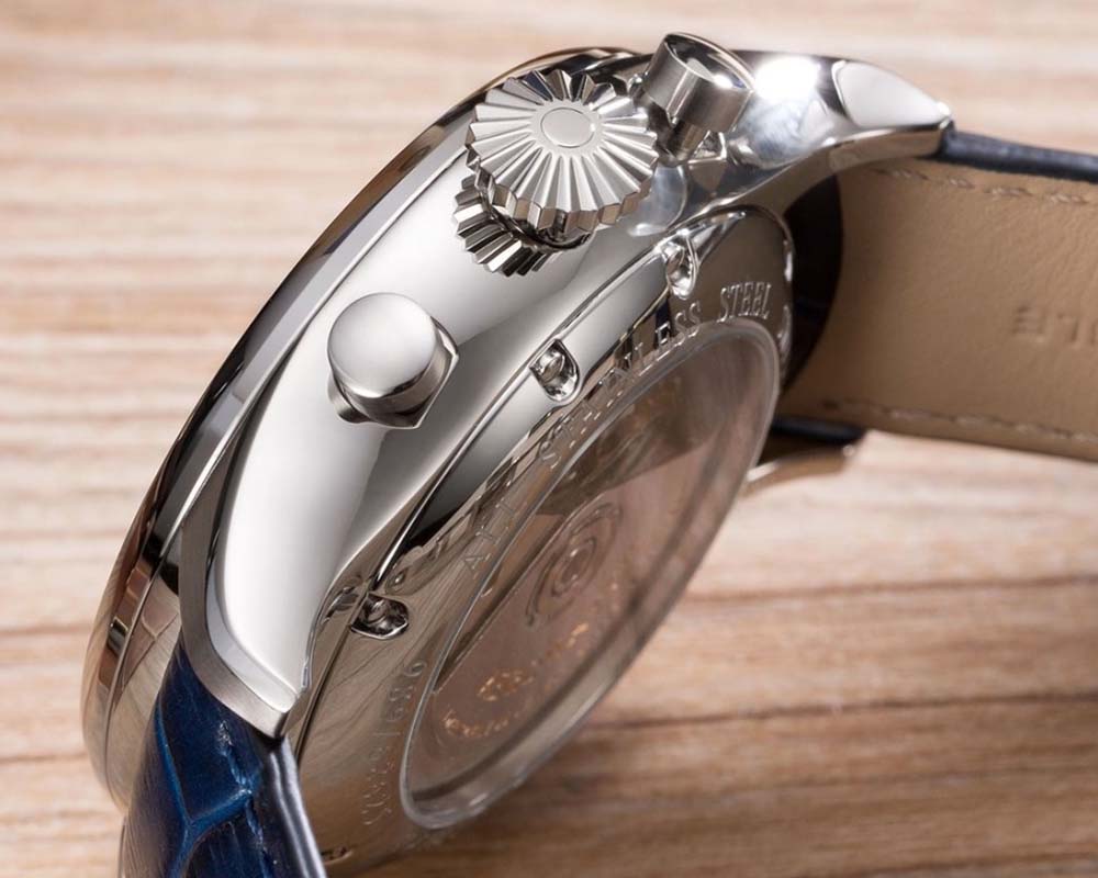 Часы оснащены надежным механическим механизмом Valjoux 7750 с автоподзаводом и хронографомХронографФункция позволяет измерять отрезки времени с особой точностью: часы, минуты, секунды. Верным признаком хронографа является наличие на циферблате 3 дополнительных окошек-счётчиков., который обеспечивает точный ход и долговечность. В модели установлено 25 камней, обеспечивающих плавность и надежность работы механизма.