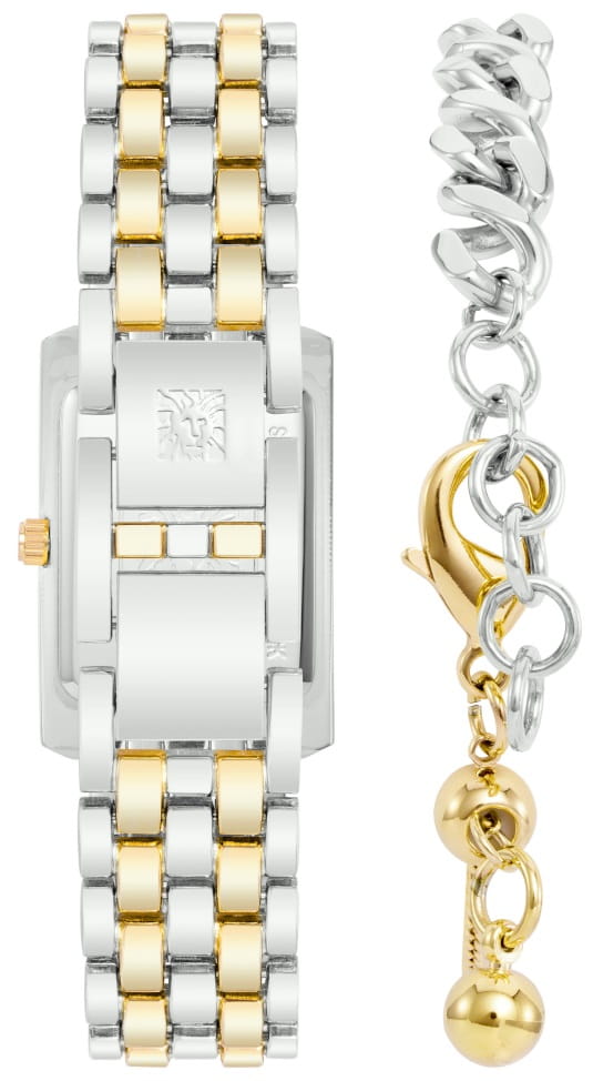 Женские кварцевые часы с минеральным стекломМинеральное стеклоМинеральное стекло представляет собой искусственно выращенный минерал кварца. Такое стекло отличается особой устойчивостью к повреждениям и царапинам. Уступает по некоторым качествам сапфировому стеклу. Anne Klein Box Set 3991TTST, кварцевый механизм с высокой точностью. Класс водозащиты: 30 метров, позволит защитить корпус от случайных брызг или капель дождя. Корпус изготовлен из нержавеющей стали с частичным PVD-покрытиемPVDУльтратонкое покрытие наносится в технике вакуумного напыления, сочетает в себе нитрид титана особой прочности со слоем золота или оксида хрома. Несёт в себе декоративную или защитную функцию. и украшен кристаллами. Заостренные прямоугольные стрелки в стиле Baton. Рифленая заводная головка. Металлический браслет с частичным PVD-покрытиемPVDУльтратонкое покрытие наносится в технике вакуумного напыления, сочетает в себе нитрид титана особой прочности со слоем золота или оксида хрома. Несёт в себе декоративную или защитную функцию. на ювелирной застежке. В комплекте стильный браслет-цепочка.