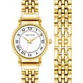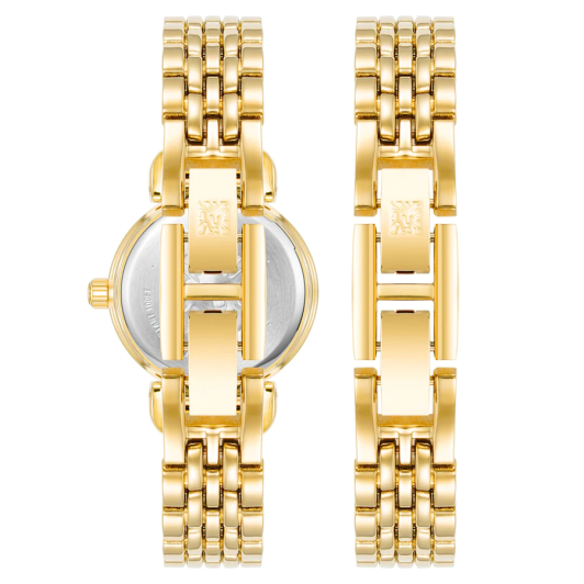 Женские американские часы с минеральным стекломМинеральное стеклоМинеральное стекло представляет собой искусственно выращенный минерал кварца. Такое стекло отличается особой устойчивостью к повреждениям и царапинам. Уступает по некоторым качествам сапфировому стеклу. Anne Klein Box Set 4144GPST, кварцевый механизм с высокой точностью. Класс водозащиты: 30 метров, позволит защитить корпус от случайных брызг или капель дождя. Корпус часов изготовлен из нержавеющей  стали с IP-покрытиемIP-покрытиеМетод ионного напыления. Демонстрирует повышенную устойчивость к истиранию, окислению и химическим веществам. Под воздействием высокого давления и температуры около 1500°C молекулы металла надёжно соединяются с частицами корпуса часов.. Стальной браслет на ювелирной застёжке  с IP-покрытиемIP-покрытиеМетод ионного напыления. Демонстрирует повышенную устойчивость к истиранию, окислению и химическим веществам. Под воздействием высокого давления и температуры около 1500°C молекулы металла надёжно соединяются с частицами корпуса часов..