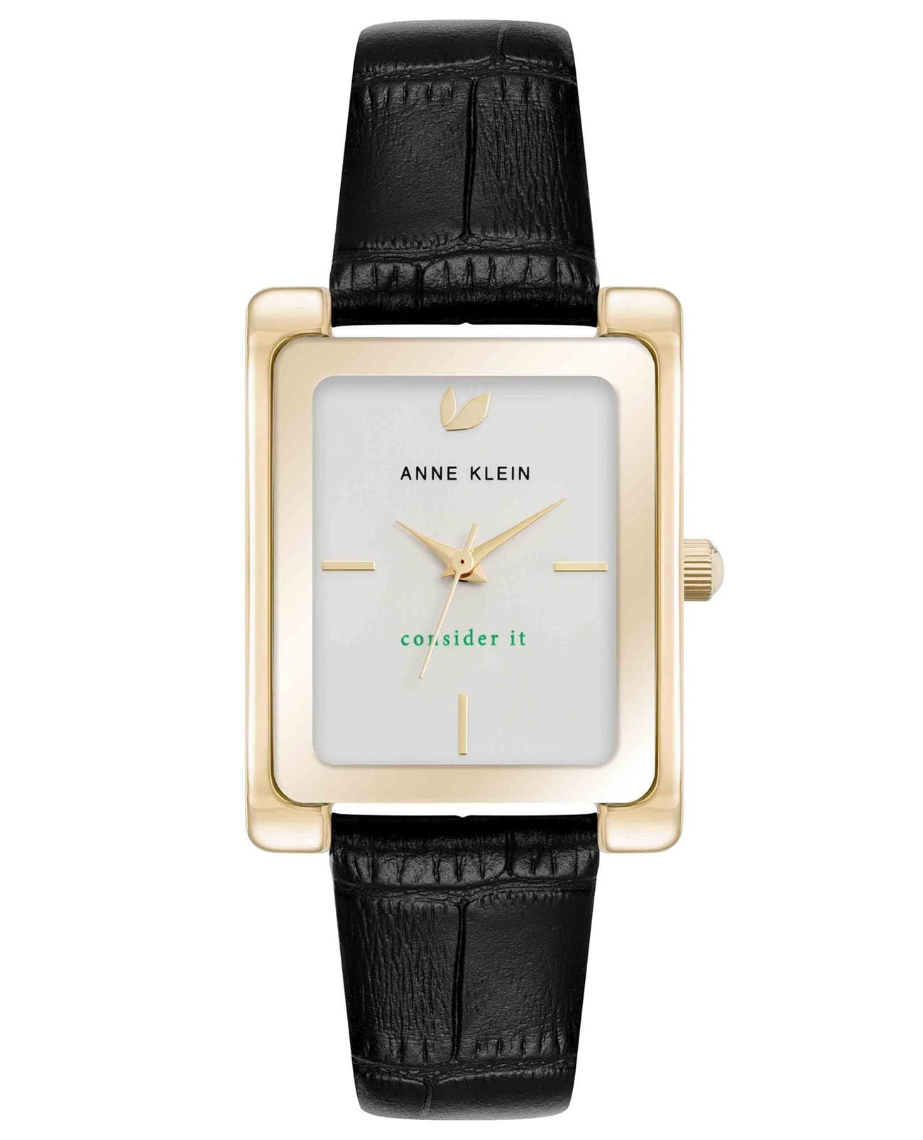Женские кварцевые часы Anne Klein Consider It 5146SVBK представляют собой элегантный аксессуар с прямоугольным корпусом 28 мм из стали с PVDPVDУльтратонкое покрытие наносится в технике вакуумного напыления, сочетает в себе нитрид титана особой прочности со слоем золота или оксида хрома. Несёт в себе декоративную или защитную функцию.-покрытием в золотистом оттенке. Модель оснащена кварцевым механизмом японского производства с точностью хода ±20 секунд в месяц и белым циферблатом с золотистыми стрелками и метками времени. Защитное минеральное стеклоМинеральное стеклоМинеральное стекло представляет собой искусственно выращенный минерал кварца. Такое стекло отличается особой устойчивостью к повреждениям и царапинам. Уступает по некоторым качествам сапфировому стеклу. устойчиво к царапинам, а водонепроницаемость 30 метров (3 атм) обеспечивает защиту от брызг и дождя. Черный кожаный ремешок из экологичной кожи, сертифицированной Leather Working Group, подчеркивает приверженность бренда устойчивому производству.
