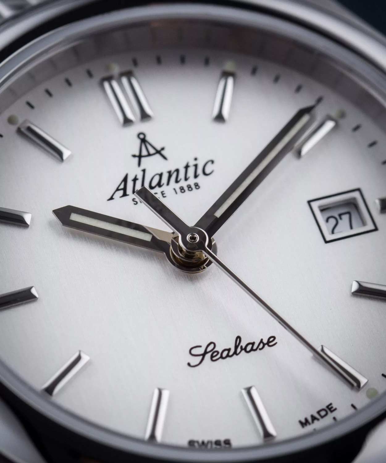 Женские швейцарские часы Atlantic Seapair Ladies 20348.41.21, кварцевый механизм с высокой точностью. Циферблат часов с люминесцентным покрытиемЛюминесцентное покрытиеПозволяет считывать показания времени в темноте. Производители наносят на стрелки, часовые индексы, безель или поверхность циферблата светонакопительный состав, дающий холодное свечение. стрелок и меток, дополнен сапфировым стекломСапфировое стеклоПрочный и надёжный материал из кристалла сапфира синтетического происхождения, характеризующийся особой твёрдостью и устойчивостью к царапинам и повреждениям., устойчивым к появлению царапин и обладающее высокой прозрачностью. Класс водозащиты: 30 метров, позволит защитить корпус от случайных брызг или капель дождя. Корпус часов изготовлен из нержавеющей стали. Стальной браслет с раскладной застёжкойРаскладная застёжкаТакой тип застёжки используется только на браслетах из металла. Она никогда не раскрывается полностью, происходит разделение на 2 и более частей. Раскладывающая застёжка снизит вероятность потери часов к минимуму.. Окошко даты находится в положении 3 часа.