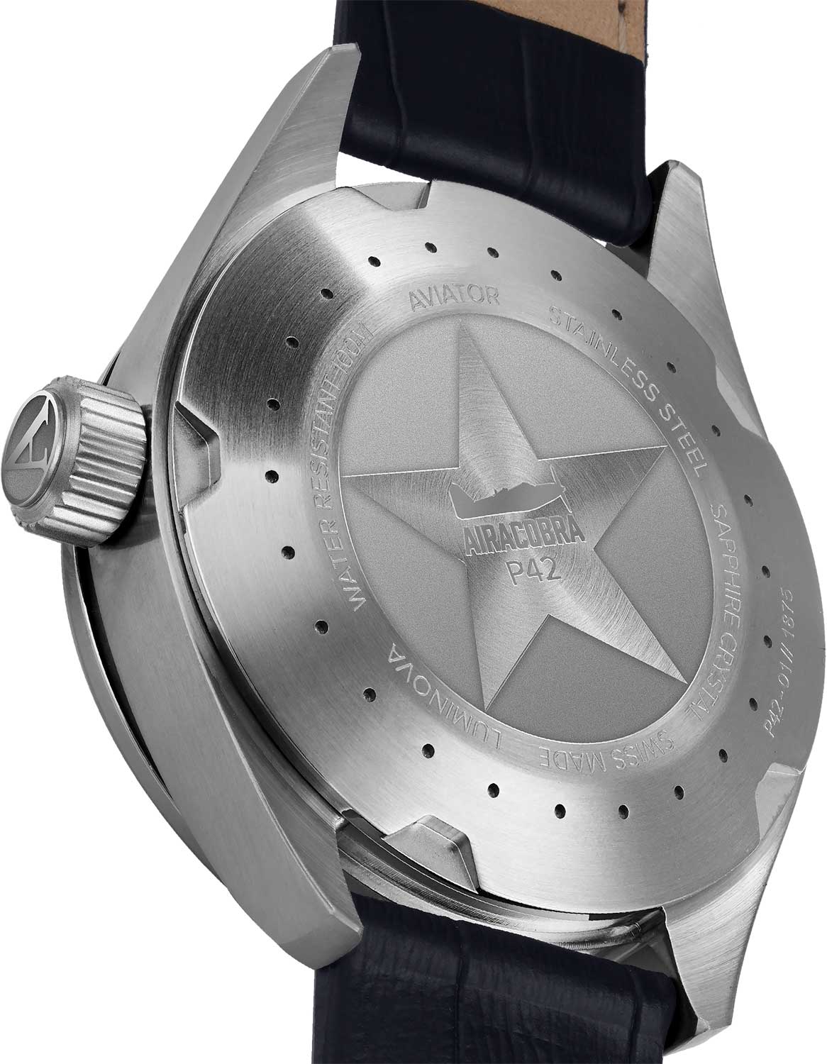 Aviator Airacobra V.1.22.0.190.4 — швейцарские часы в классике авиадизайна, сочетающие безупречную читаемость и высокую надёжность. Корпус диаметром 42 мм выполнен из нержавеющей стали — это придаёт модели благородный и уверенный облик.