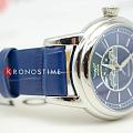 Циферблат в стиле Art Deco украшает усложнение фаз Луны в верхней половине, обрамлённой тонким кольцом облаков. Отмечено окно даты в положении «6 часов». Стрелки и накладные метки обработаны люминесцентным покрытиемЛюминесцентное покрытиеПозволяет считывать показания времени в темноте. Производители наносят на стрелки, часовые индексы, безель или поверхность циферблата светонакопительный состав, дающий холодное свечение. Superluminova — для уверенного считывания в темноте. Поверхность защищена сапфировым стекломСапфировое стеклоПрочный и надёжный материал из кристалла сапфира синтетического происхождения, характеризующийся особой твёрдостью и устойчивостью к царапинам и повреждениям. с антибликовым покрытием.