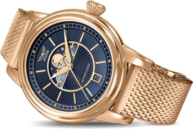 Aviator V.1.33.2.256.5 “Douglas Moonflight” — элегантный дамский швейцарский Moonphase с утончённой авиационной эстетикой. Корпус 36 мм из нержавеющей стали с PVD-покрытиемPVDУльтратонкое покрытие наносится в технике вакуумного напыления, сочетает в себе нитрид титана особой прочности со слоем золота или оксида хрома. Несёт в себе декоративную или защитную функцию. с полированной отделкой обладает компактными пропорциями и удобным литым профилем.