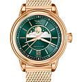 Aviator Douglas MoonFlight V.1.33.2.263.5 — элегантные дамские швейцарские часы с утончённой авиационной эстетикой. Корпус 36 мм из нержавеющей стали 316L с PVD-покрытиемPVDУльтратонкое покрытие наносится в технике вакуумного напыления, сочетает в себе нитрид титана особой прочности со слоем золота или оксида хрома. Несёт в себе декоративную или защитную функцию. обладает компактными пропорциями и удобным профилем. Циферблат в стиле Art Deco украшает усложнение фаз Луны в верхней половине, обрамлённой тонким кольцом облаков. Отмечено окно даты в положении «6 часов». Стрелки обработаны люминесцентным покрытиемЛюминесцентное покрытиеПозволяет считывать показания времени в темноте. Производители наносят на стрелки, часовые индексы, безель или поверхность циферблата светонакопительный состав, дающий холодное свечение. Superluminova — для уверенного считывания в темноте. Поверхность защищена сапфировым стекломСапфировое стеклоПрочный и надёжный материал из кристалла сапфира синтетического происхождения, характеризующийся особой твёрдостью и устойчивостью к царапинам и повреждениям. с антибликовым покрытиемАнтибликовое покрытиеСлой оксида металла в 0,13-0,3 микрон, благодаря которому стекло часов не бликует и не отражает свет. Антибликовое покрытие уменьшает отражение света в 10 раз, обеспечивая отличную читаемость показателей циферблата.. Сердце модели — швейцарский кварцевый механизм Ronda 708 с функцией отображения лунных фаз, 13 рубинами и возможностью работать до 54 месяцев без замены батареи. Завинчивающаяся задняя крышка с гравировкой Douglas DC-3 и герметичность до 100 метров создают надёжную основу для эксплуатации. Стальной браслет с PVD-покрытиемPVDУльтратонкое покрытие наносится в технике вакуумного напыления, сочетает в себе нитрид титана особой прочности со слоем золота или оксида хрома. Несёт в себе декоративную или защитную функцию. миланского плетения на раскладном замкеРаскладной замокДанный вариант застежки используется только на часах с металлическим браслетом. Отличительная особенность такого крепления в том, что длина браслета становится универсальной и вы можете самостоятельно отрегулировать нужный вам размер – застежка просто двигается по браслету часов., сочетая комфорт, элегантность и практичность. Лимитированная серия. Aviator Douglas MoonFlight — это гармоничное сочетание авиационного наследия, женской элегантности и технической изысканности, воплощённое в элегантном и функциональном аксессуаре.