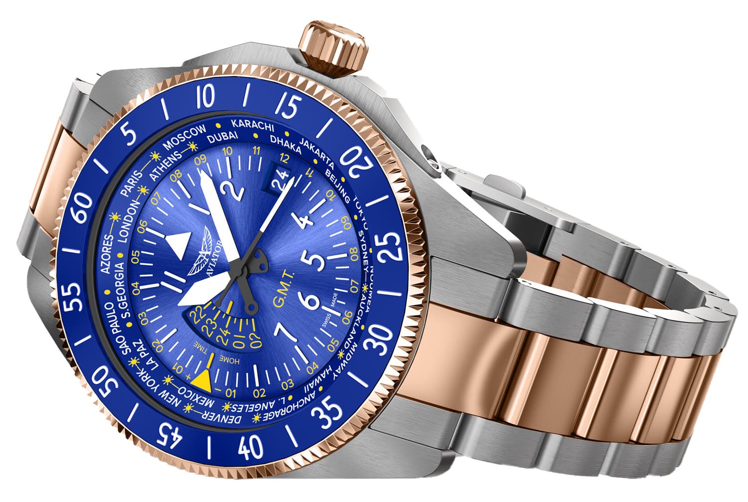 Airacobra GMT — инструментальное сочетание часовой точности, удобной функциональности GMT и авиационной эстетики, предназначенное для тех, кто ценит практичность и стиль в равной мере.