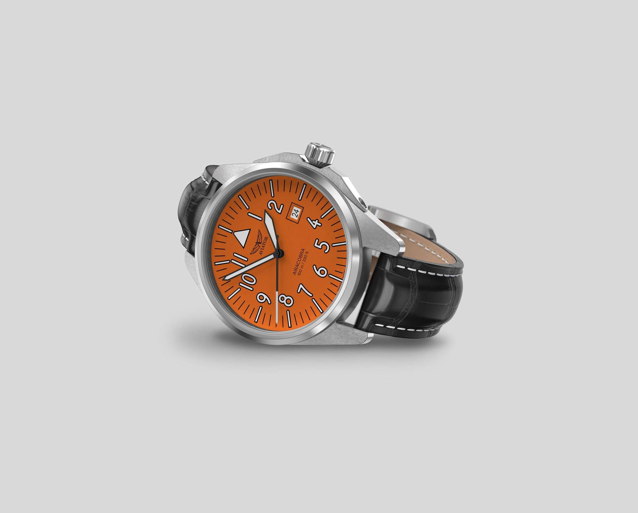 Aviator V.1.38.0.321.4 “Airacobra 43 Type A” — надёжные швейцарские пилотские часы с насыщенным функционалом и строгим авиационным дизайном. Корпус диаметром 42,8 мм выполнен из нержавеющей стали.