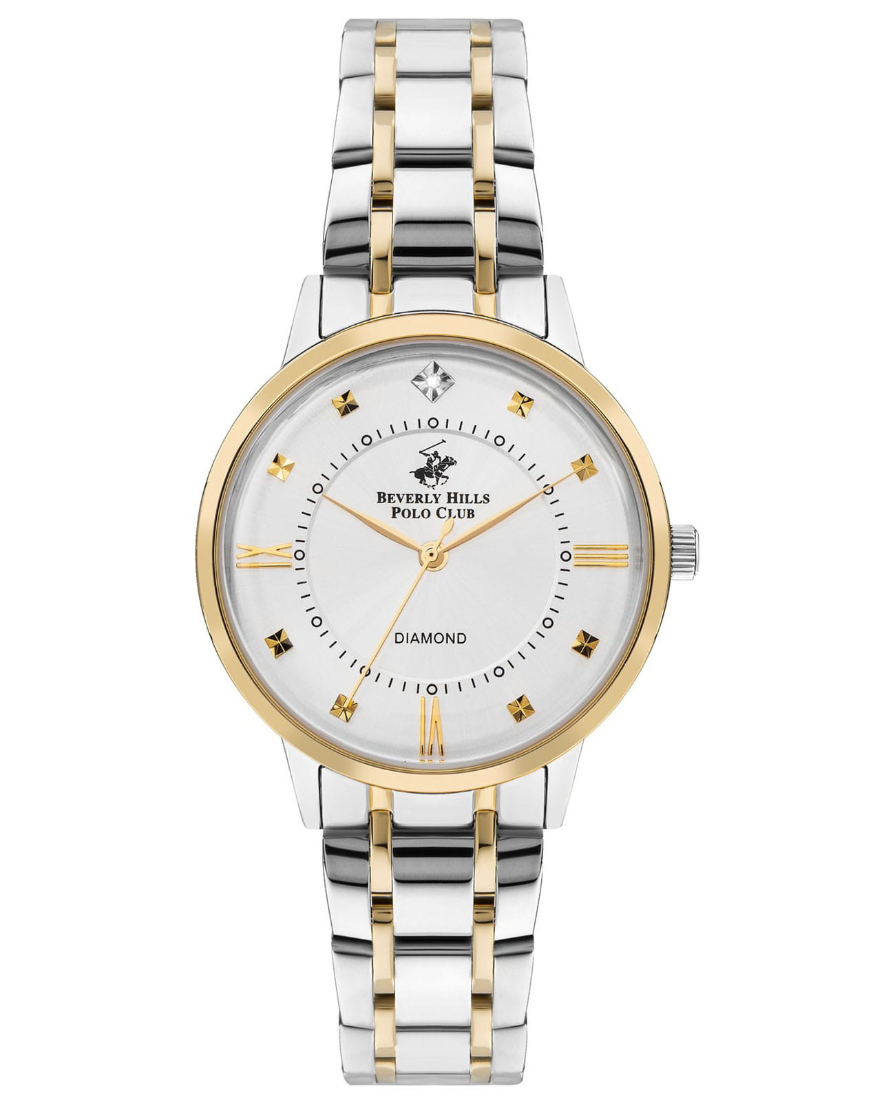 Американские женские часы с минеральным стекломМинеральное стеклоМинеральное стекло представляет собой искусственно выращенный минерал кварца. Такое стекло отличается особой устойчивостью к повреждениям и царапинам. Уступает по некоторым качествам сапфировому стеклу. Beverly Hills Polo Club BP3388C.230, кварцевый механизм с высокой точностью. Корпус и браслет часов изготовлены из нержавеющей стали с частичным IP-покрытиемIP-покрытиеМетод ионного напыления. Демонстрирует повышенную устойчивость к истиранию, окислению и химическим веществам. Под воздействием высокого давления и температуры около 1500°C молекулы металла надёжно соединяются с частицами корпуса часов.. Циферблат украшен бриллиантом. . Класс водозащиты: 50 метров, позволит защитить корпус от случайных брызг или капель дождя. Стальной браслет на раскладной застёжкеРаскладная застёжкаТакой тип застёжки используется только на браслетах из металла. Она никогда не раскрывается полностью, происходит разделение на 2 и более частей. Раскладывающая застёжка снизит вероятность потери часов к минимуму..