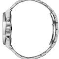 Завершает образ стальной браслет с раскладывающейся застежкой-бабочкойЗастёжка "бабочка"Такой вид застёжки дополняется предохранителями, помогающими избежать случайного раскрытия браслета. Обладают изящным исполнением. , обеспечивающей комфорт и уверенную фиксацию на запястье. Такая застежка выглядит стильно и практично.