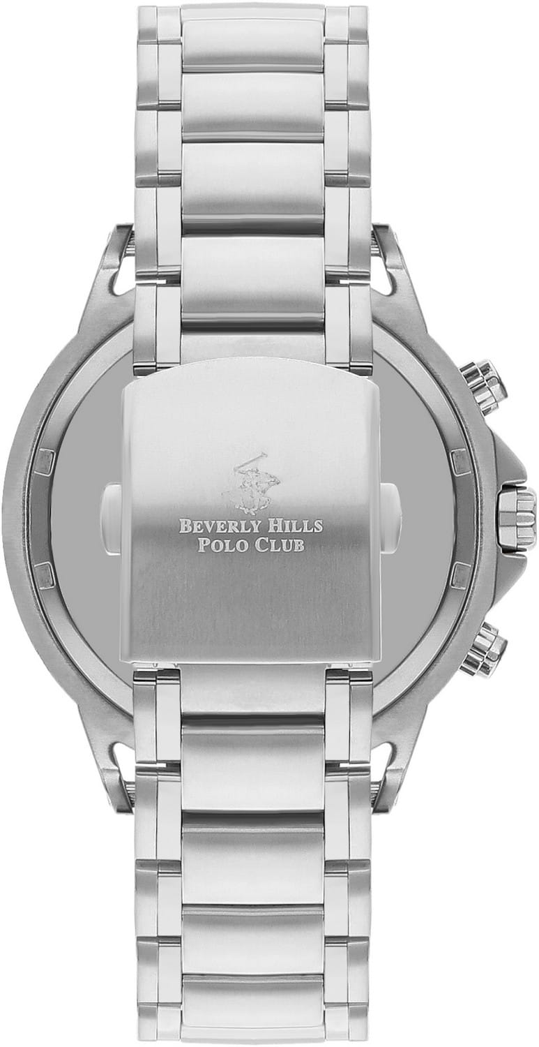 Американские мужские часы-хронографХронографФункция позволяет измерять отрезки времени с особой точностью: часы, минуты, секунды. Верным признаком хронографа является наличие на циферблате 3 дополнительных окошек-счётчиков. Beverly Hills Polo Club BP3401X.390 с минеральным стекломМинеральное стеклоМинеральное стекло представляет собой искусственно выращенный минерал кварца. Такое стекло отличается особой устойчивостью к повреждениям и царапинам. Уступает по некоторым качествам сапфировому стеклу., кварцевый механизм с высокой точностью. Класс водозащиты: 100 метров, позволит плавать, нырять и заниматься другими водными видами спорта. Браслет с раскладной застёжкойРаскладная застёжкаТакой тип застёжки используется только на браслетах из металла. Она никогда не раскрывается полностью, происходит разделение на 2 и более частей. Раскладывающая застёжка снизит вероятность потери часов к минимуму.. Окошко даты находится в положении между 4 и 5 часов.