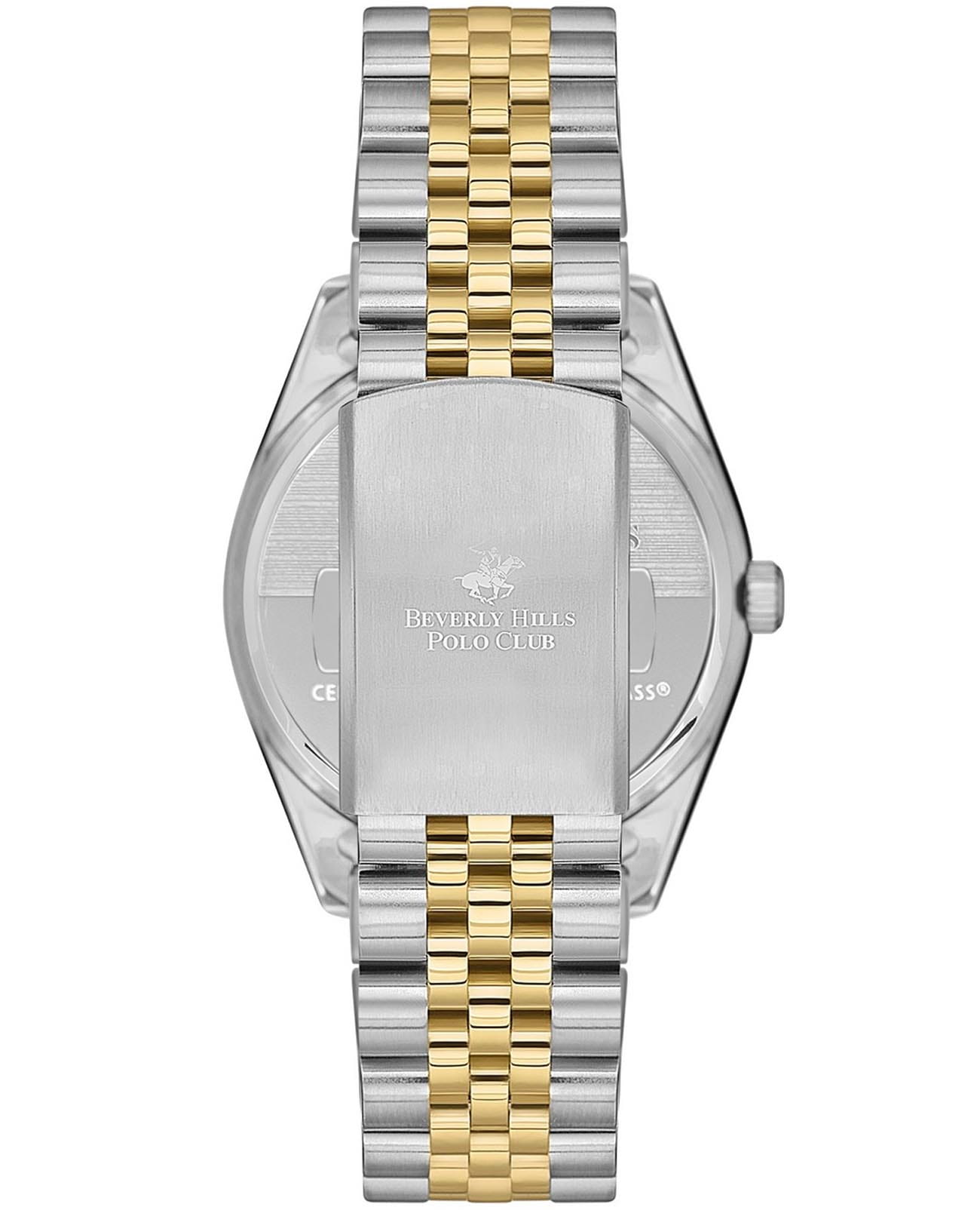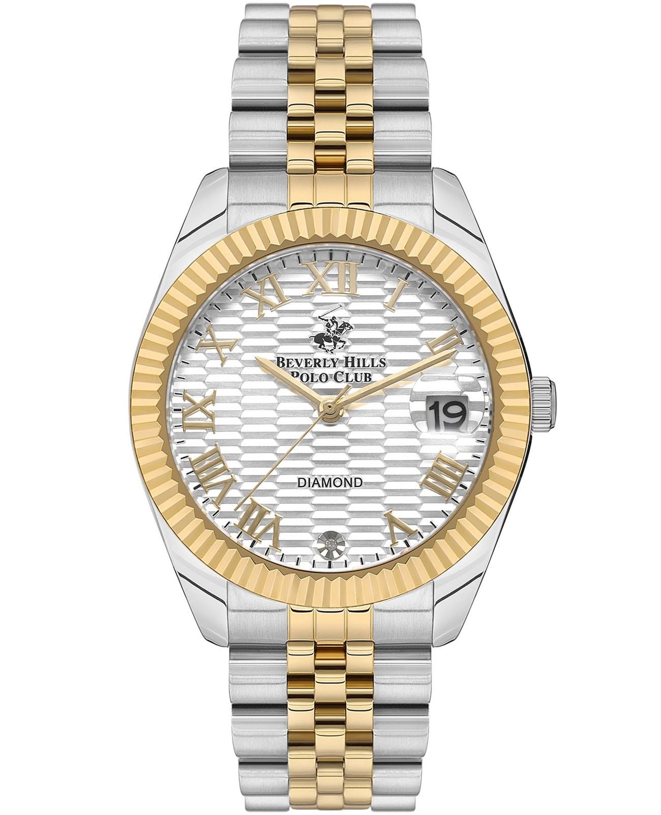 Женские наручные часы Beverly Hills Polo Club BP3582C.230 с надёжным автоматическим механизмом. Минеральное стеклоМинеральное стеклоМинеральное стекло представляет собой искусственно выращенный минерал кварца. Такое стекло отличается особой устойчивостью к повреждениям и царапинам. Уступает по некоторым качествам сапфировому стеклу. устойчивое к мелким механическим повреждениям. Корпус часов изготовлен из нержавеющей стали. Стальной браслет с частичным IP-покрытиемIP-покрытиеМетод ионного напыления. Демонстрирует повышенную устойчивость к истиранию, окислению и химическим веществам. Под воздействием высокого давления и температуры около 1500°C молекулы металла надёжно соединяются с частицами корпуса часов. на раскладной застёжкеРаскладная застёжкаТакой тип застёжки используется только на браслетах из металла. Она никогда не раскрывается полностью, происходит разделение на 2 и более частей. Раскладывающая застёжка снизит вероятность потери часов к минимуму.. Окошко даты находится в положении 3 часа. Класс водозащиты: 50 метров, позволит защитить корпус от случайных брызг или капель дождя. Циферблат инкрустирован синтетическим бриллиантом.