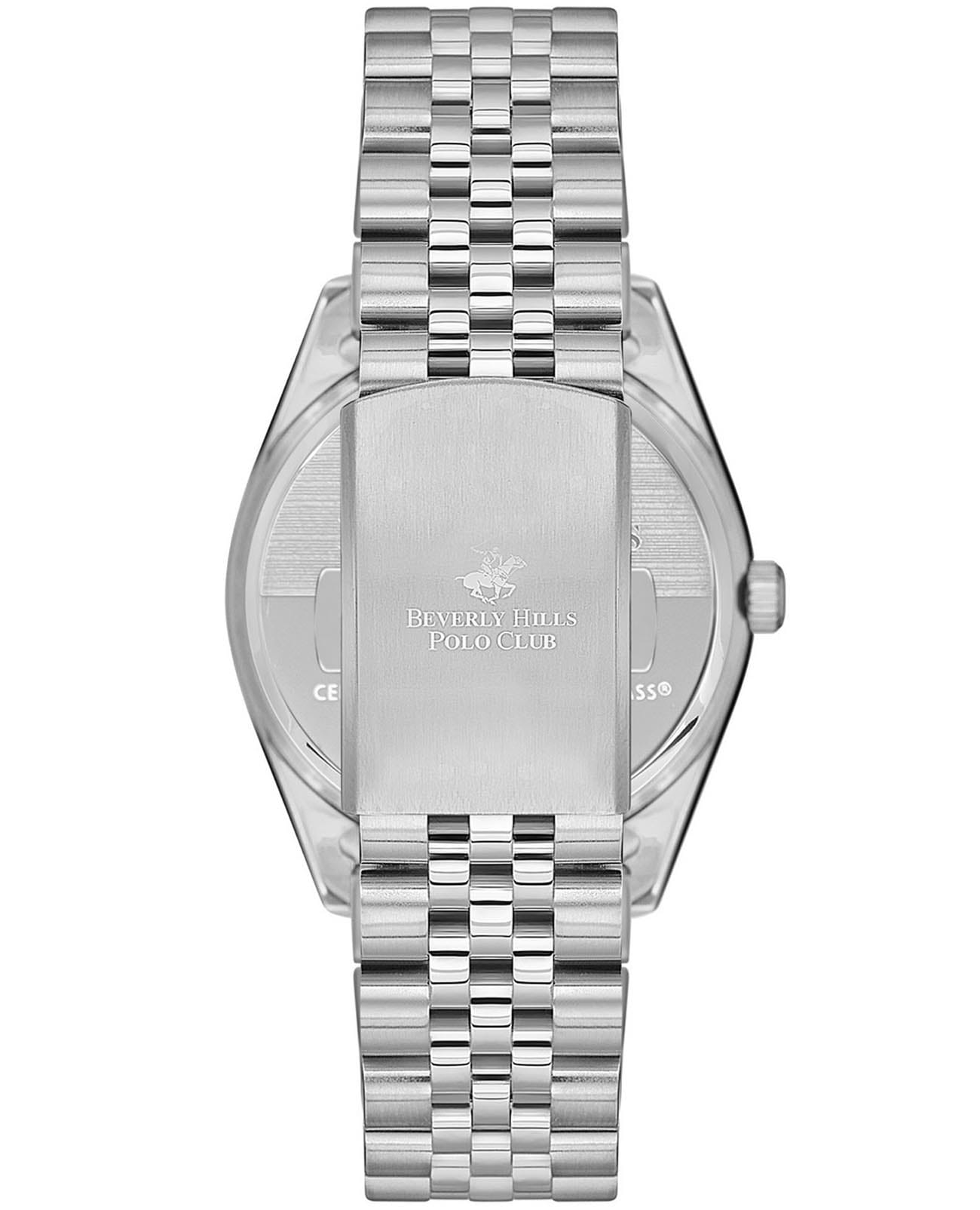 Женские наручные часы Beverly Hills Polo Club BP3582C.390 с надёжным автоматическим механизмом. Минеральное стеклоМинеральное стеклоМинеральное стекло представляет собой искусственно выращенный минерал кварца. Такое стекло отличается особой устойчивостью к повреждениям и царапинам. Уступает по некоторым качествам сапфировому стеклу. устойчивое к мелким механическим повреждениям. Корпус часов изготовлен из нержавеющей стали. Стальной браслет на раскладной застёжкеРаскладная застёжкаТакой тип застёжки используется только на браслетах из металла. Она никогда не раскрывается полностью, происходит разделение на 2 и более частей. Раскладывающая застёжка снизит вероятность потери часов к минимуму.. Окошко даты находится в положении 3 часа. Класс водозащиты: 50 метров, позволит защитить корпус от случайных брызг или капель дождя. Циферблат инкрустирован синтетическим бриллиантом.