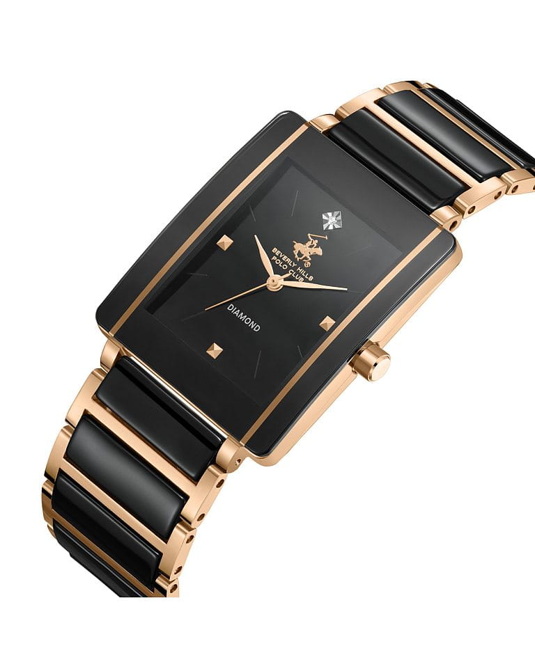 Часы Beverly Hills Polo Club BP3699C.521 — это элегантный мужской аксессуар, который сочетает стильный дизайн и функциональность. Корпус выполнен из нержавеющей стали с IP-покрытиемIP-покрытиеМетод ионного напыления. Демонстрирует повышенную устойчивость к истиранию, окислению и химическим веществам. Под воздействием высокого давления и температуры около 1500°C молекулы металла надёжно соединяются с частицами корпуса часов., что придаёт часам современный и утончённый вид. Чёрный циферблат с золотистыми метками и стрелками обеспечивает отличную читаемость. Циферблат защищён минеральным стекломМинеральное стеклоМинеральное стекло представляет собой искусственно выращенный минерал кварца. Такое стекло отличается особой устойчивостью к повреждениям и царапинам. Уступает по некоторым качествам сапфировому стеклу., устойчивым к царапинам. Модель оснащена кварцевым механизмом, обеспечивающим точное измерение времени. Керамический браслет чёрного цвета дополнен застёжкой-бабочкойЗастёжка "бабочка"Такой вид застёжки дополняется предохранителями, помогающими избежать случайного раскрытия браслета. Обладают изящным исполнением. , которая гарантирует комфортное ношение и надёжную фиксацию. Часы обладают водозащитой до 3 ATM, что делает их подходящими для повседневного использования, включая случайные контакты с водой. Beverly Hills Polo Club BP3699C.521 — это аксессуар, который подчеркнёт стиль и статус современного мужчины.