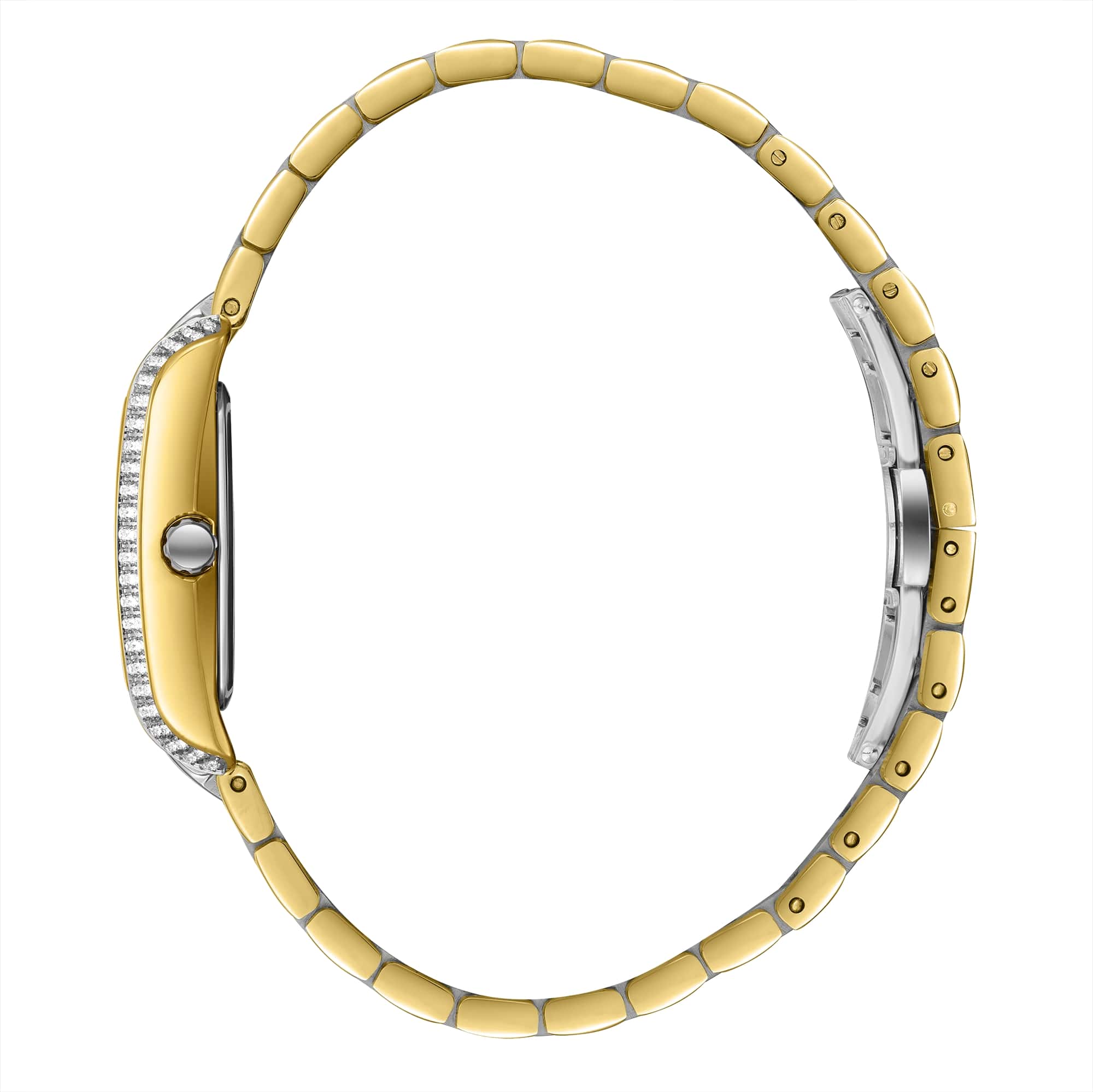 Механизм часов кварцевый, питание от батарейки, что обеспечивает точность хода и минимальное обслуживание. Циферблат защищен минеральным стекломМинеральное стеклоМинеральное стекло представляет собой искусственно выращенный минерал кварца. Такое стекло отличается особой устойчивостью к повреждениям и царапинам. Уступает по некоторым качествам сапфировому стеклу. с сапфировым покрытием, которое устойчиво к появлению царапин и сохраняет чистоту взгляда на протяжении длительного времени. Стальной браслет с частичным IP-покрытиемIP-покрытиеМетод ионного напыления. Демонстрирует повышенную устойчивость к истиранию, окислению и химическим веществам. Под воздействием высокого давления и температуры около 1500°C молекулы металла надёжно соединяются с частицами корпуса часов. на застёжке-бабочке с кнопкамиЗастёжка "бабочка"Такой вид застёжки дополняется предохранителями, помогающими избежать случайного раскрытия браслета. Обладают изящным исполнением. . Часы обладают водозащитой до 30 метров, позволит защитить корпус от случайных брызг или капель дождя. Цирконы придают часам неповторимый шарм и изысканность.
