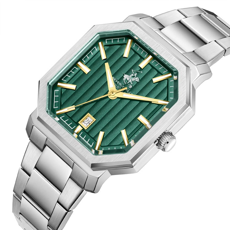 Американские мужские часы Beverly Hills Polo Club BP3793X.370 - это стильный мужской аксессуар, который сочетает элегантный дизайн и практичность. Корпус выполнен из нержавеющей стали серебристого цвета, диаметром 38 мм, что обеспечивает долговечность и утончённый внешний вид. Надежное минеральное стеклоМинеральное стеклоМинеральное стекло представляет собой искусственно выращенный минерал кварца. Такое стекло отличается особой устойчивостью к повреждениям и царапинам. Уступает по некоторым качествам сапфировому стеклу. с сапфировым покрытием защищает циферблат от царапин и обеспечивает долговечность. Модель оснащена кварцевым механизмом, обеспечивающим высокую точность хода. Стальной браслет на застёжке-бабочке с кнопкамиЗастёжка "бабочка"Такой вид застёжки дополняется предохранителями, помогающими избежать случайного раскрытия браслета. Обладают изящным исполнением. обеспечивает комфортное ношение. Окошко даты находится в положении 6 часов. Стрелки и метки с люминесцентным покрытиемЛюминесцентное покрытиеПозволяет считывать показания времени в темноте. Производители наносят на стрелки, часовые индексы, безель или поверхность циферблата светонакопительный состав, дающий холодное свечение. позволяют легко считывать время даже в условиях недостаточного освещения. Водозащита 50 метров позволит защитить корпус от случайных брызг или капель дождя. Эта модель – отличный выбор для тех, кто ищет сочетание стиля, качества и функциональности. Часы станут не только полезным аксессуаром, но и выразительным элементом вашего имиджа.