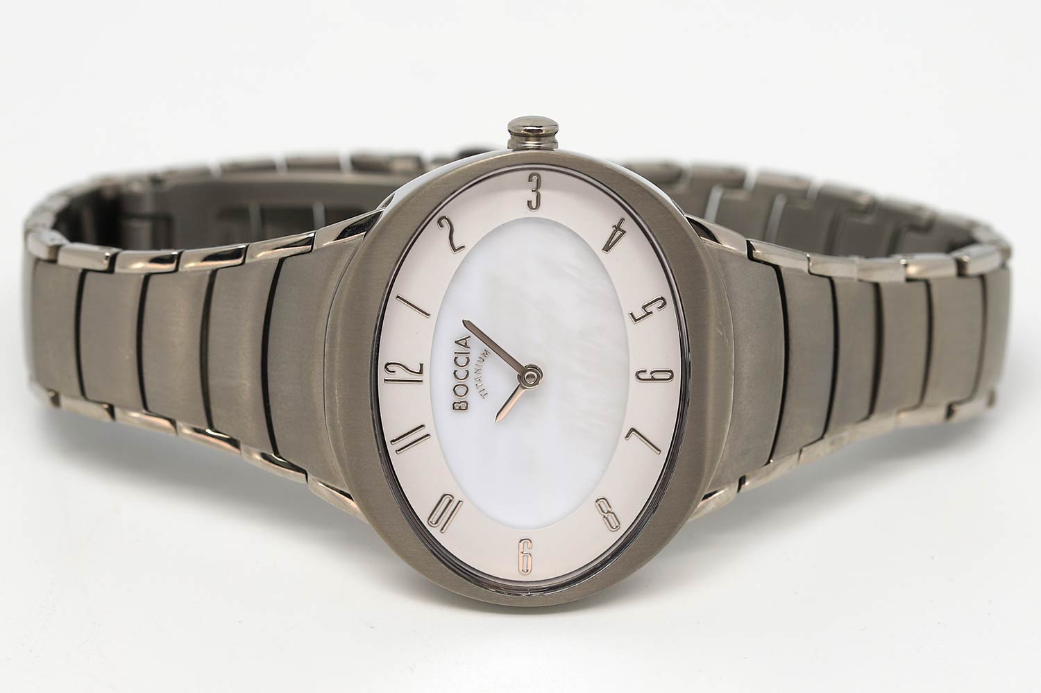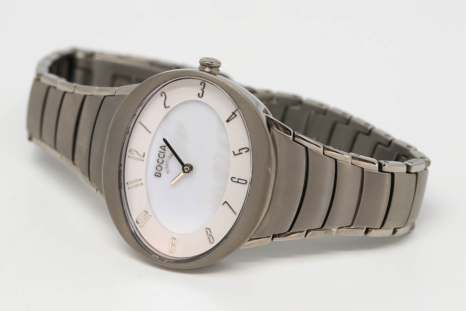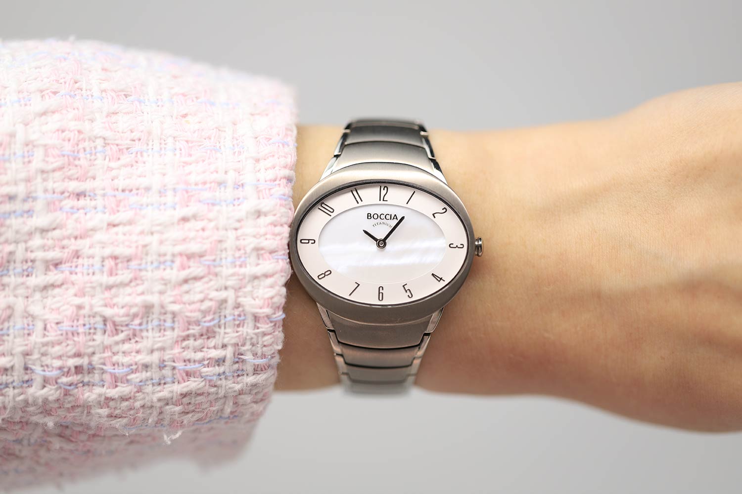 Женские наручные часы Boccia Titanium 3165-10 с надёжным кварцевым механизмом. Корпус и браслет часов изготовлены из титана. Минеральное стеклоМинеральное стеклоМинеральное стекло представляет собой искусственно выращенный минерал кварца. Такое стекло отличается особой устойчивостью к повреждениям и царапинам. Уступает по некоторым качествам сапфировому стеклу. устойчивое к мелким механическим повреждениям. Титановый браслет на раскладной застёжкеРаскладная застёжкаТакой тип застёжки используется только на браслетах из металла. Она никогда не раскрывается полностью, происходит разделение на 2 и более частей. Раскладывающая застёжка снизит вероятность потери часов к минимуму.. Класс водозащиты: 50 метров, позволит защитить корпус от случайных брызг или капель дождя.