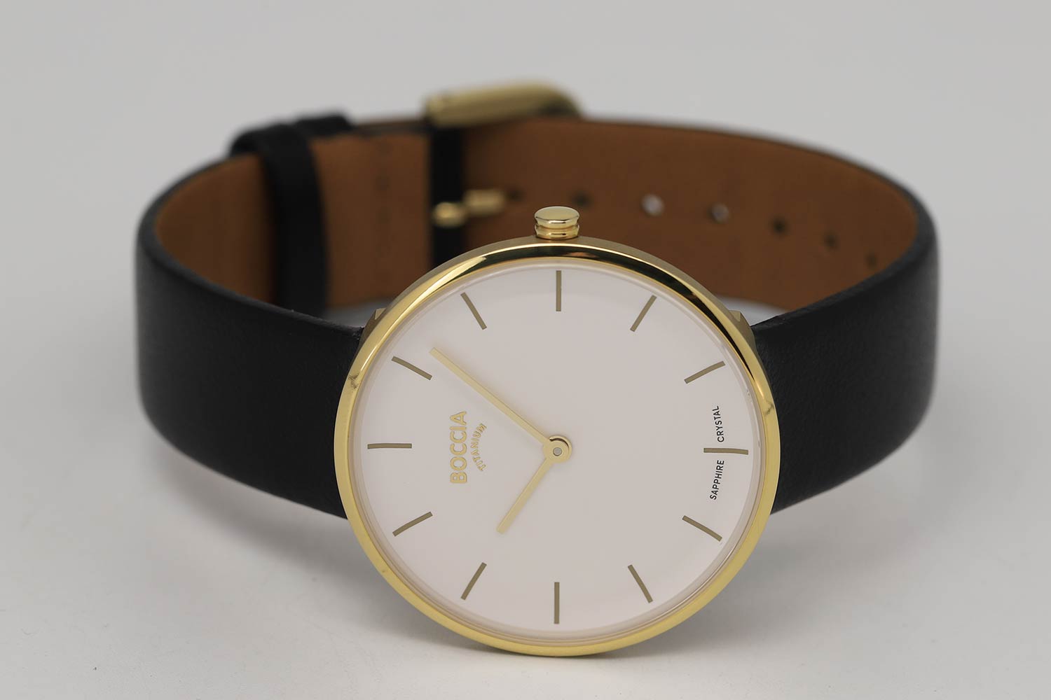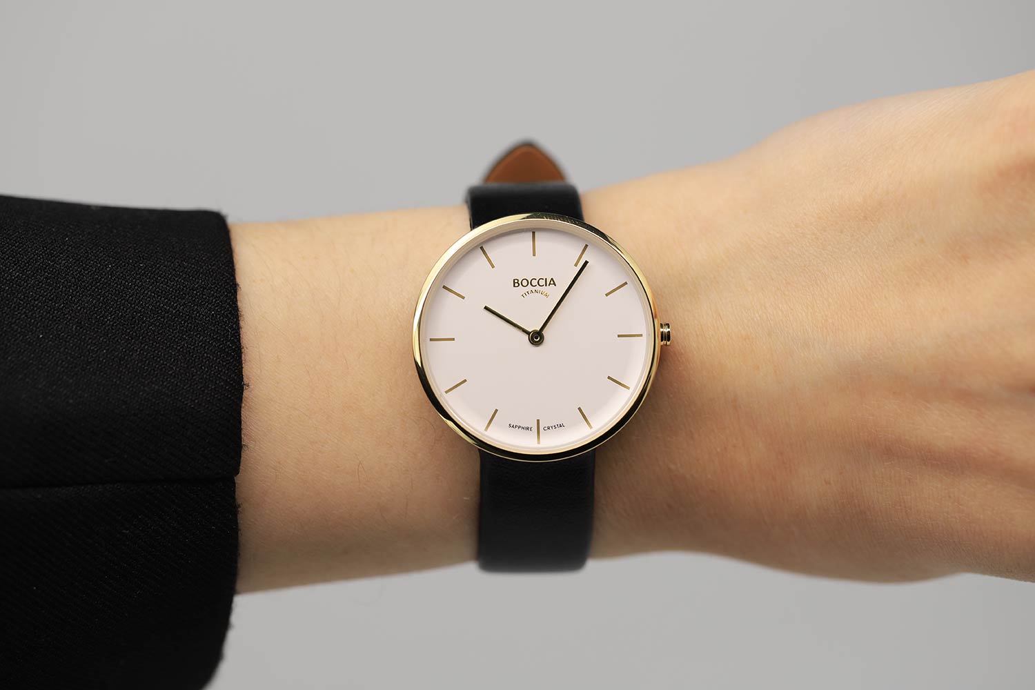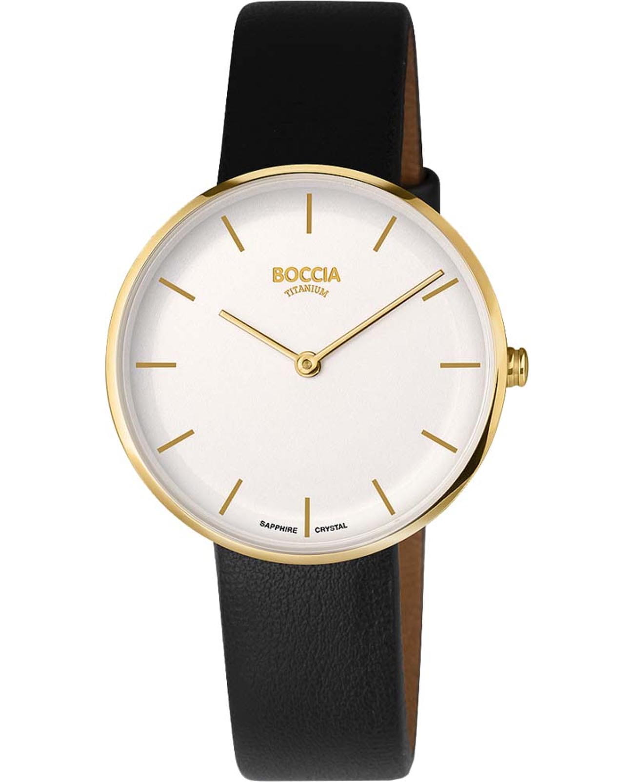 Женские наручные часы Boccia Titanium 3327-04 с надёжным кварцевым механизмом. Корпус часов изготовлен из титана с PVD-покрытиемPVDУльтратонкое покрытие наносится в технике вакуумного напыления, сочетает в себе нитрид титана особой прочности со слоем золота или оксида хрома. Несёт в себе декоративную или защитную функцию.. Сапфировое стеклоСапфировое стеклоПрочный и надёжный материал из кристалла сапфира синтетического происхождения, характеризующийся особой твёрдостью и устойчивостью к царапинам и повреждениям. устойчивое к мелким механическим повреждениям. Класс водозащиты: 30 метров, позволит защитить корпус от случайных брызг или капель дождя. Кожаный ремешок на стандартной застёжке.