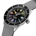 Эта яркая модель представлена лимитированной серией из 1000 экземпляров. Как и оригинальные SuperOcean, новые часы имеют две характерные особенности: на 42-миллиметровом корпусе из нержавеющей стали установлен вращающийся в оба направления вогнутый керамический безель, а на циферблате выделяются крупные метки.