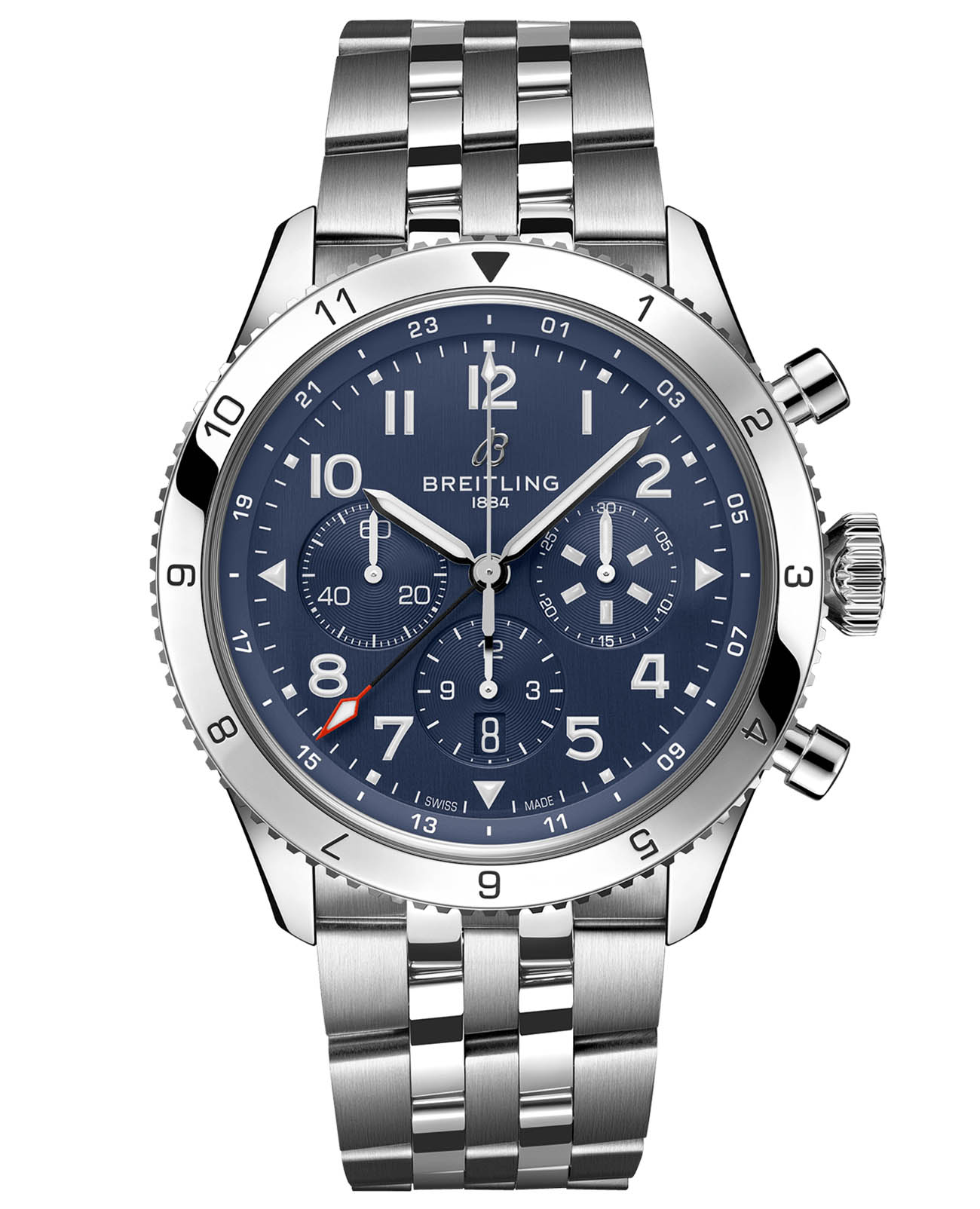 История Breitling неотделима от полета - от смелых первых взлетов до зарождения коммерческих авиаперевозок. В 1930-х годах авиационное подразделение Breitling Huit сделало себе имя, изобретя точные часы в кабине пилота. Два десятилетия спустя компания представила еще один новый летный прибор, на этот раз в носимой форме: Ref. 765 AVI. Эти новаторские часы для пилота послужили технической основой для сегодняшней коллекции Super AVI, вдохновленной суровым духом знаменитых ранних самолетов. Super AVI отдает дань уважения Vought F4U Corsair в честь одной из таких легенд. Как военно-морскому самолету времен Второй мировой войны, "Корсару" приходилось совершать сложные взлеты и посадки с авианосцев и удаленных посадочных полос. Скорость и подъемная сила были решающими, и самолет справился с задачей с честью, став первым одномоторным истребителем, преодолев отметку в 400 миль в час (640 км/ч), а также обеспечив исключительную скороподъемность. Его дизайн “изогнутого крыла”, большой пропеллер и фирменная синяя ливрея делают его эмблемой истории авиации. Часы Super AVI Tribute to Vought F4U Corsair, предназначенные для настоящих пилотов, выдерживающих суровые условия винтажного кокпита, украшены крупными, хорошо читаемыми арабскими цифрами на циферблате и безелеБезельВнешний ободок, закрепляющий стекло. В спортивных часах так называется поворотное кольцо с делениями на циферблате, выполняет роль таймера – замеряет отрезки времени на шкале. Неподвижный безель – элемент декора. Однонаправленно вращающийся безель на дайверских часах позволяет фиксировать моменты погружения и выныривания на поверхность.. Крупногабаритная заводная головка и рифленый безельБезельВнешний ободок, закрепляющий стекло. В спортивных часах так называется поворотное кольцо с делениями на циферблате, выполняет роль таймера – замеряет отрезки времени на шкале. Неподвижный безель – элемент декора. Однонаправленно вращающийся безель на дайверских часах позволяет фиксировать моменты погружения и выныривания на поверхность. на прочном 46-миллиметровом корпусе обеспечивают оптимальное сцепление даже в руках пилота в перчатках. Прошитые сверху ремешки из телячьей кожи повторяют швы классического летного снаряжения, а дополнительный браслет из нержавеющей стали является элегантной альтернативой. Пилоты и другие путешественники по достоинству оценят возможность отслеживать второй часовой пояс с помощью 24-часовой маркировки на внутреннем безеле и стрелки GMTGMTОтображение времени второго часового пояса.Такая функция особенно актуальна для путешественников и бизнесменов,которые общаются с людьми из разных стран,теперь вы всегда будете знать,какой час у вашего партнёра или близкого человека. с красным наконечником. Двигателем Super AVI является сертифицированный Сертификат COSCСертификат COSCОфициальный сертификат, подтверждающий то, что часы ходят с особо высокой точностью. Для получения документа часы подвергаются тестовым испытаниям, разработанным швейцарским институтом тестирования хронометров COSC. Допустимая норма для механических часов -4/+6 секунд в день, для кварцевых моделей +/- 0,07 секунд в день. механизм Breitling Manufacture Caliber B04, который обеспечивает примерно 70-часовой запас хода.