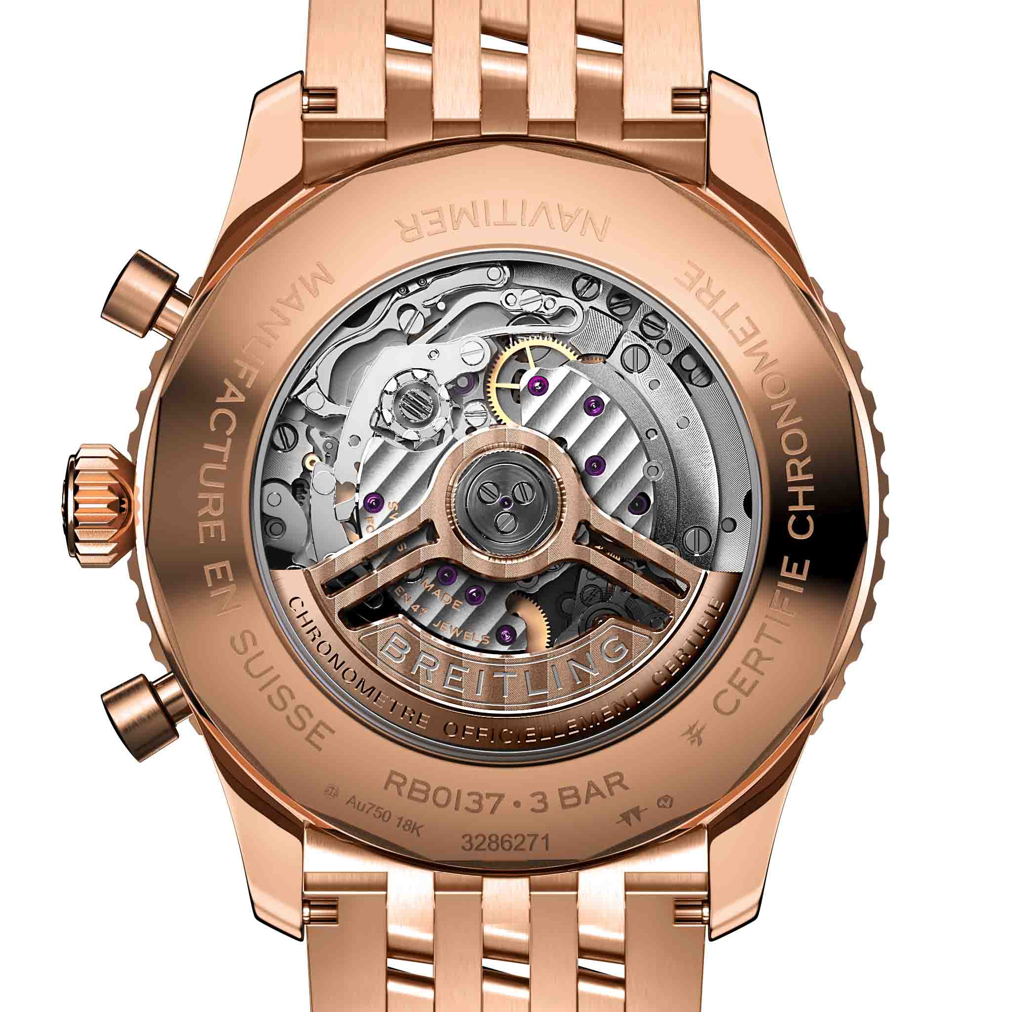 Мужские швейцарские часы-хронографХронографФункция позволяет измерять отрезки времени с особой точностью: часы, минуты, секунды. Верным признаком хронографа является наличие на циферблате 3 дополнительных окошек-счётчиков. с секундомеромСекундомерСекундоме́р — прибор, способный измерять интервалы времени с точностью до долей секунды. Breitling Navitimer B01 Chronograph 46 RB0137241G1R1, механический механизм (автоматический калибр) с высокой точностью. Сапфировое стеклоСапфировое стеклоПрочный и надёжный материал из кристалла сапфира синтетического происхождения, характеризующийся особой твёрдостью и устойчивостью к царапинам и повреждениям. устойчивое к появлению царапин, обладающее высокой прозрачностью. Класс водозащиты: 30 метров, позволит защитить корпус от случайных брызг или капель дождя. Корпус часов изготовлен из 18-каратного золота18-каратное золотоОбозначение по каратной системе пробирования, оно показывает, сколько драгоценного металла содержится в изделии. 18 карат - в составе 75% чистого золота, соответствует 750 пробе.