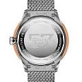 . Сапфировое стеклоСапфировое стеклоПрочный и надёжный материал из кристалла сапфира синтетического происхождения, характеризующийся особой твёрдостью и устойчивостью к царапинам и повреждениям., выпуклое с обеих сторон, внутреннее антибликовое покрытие. Стальной браслет миланского плетения на застёжке-бабочке с кнопкамиЗастёжка "бабочка"Такой вид застёжки дополняется предохранителями, помогающими избежать случайного раскрытия браслета. Обладают изящным исполнением. . Водозащита: 100 метров, позволит плавать, нырять и заниматься другими водными видами спорта. Поворотный керамический безельБезельВнешний ободок, закрепляющий стекло. В спортивных часах так называется поворотное кольцо с делениями на циферблате, выполняет роль таймера – замеряет отрезки времени на шкале. Неподвижный безель – элемент декора. Однонаправленно вращающийся безель на дайверских часах позволяет фиксировать моменты погружения и выныривания на поверхность..