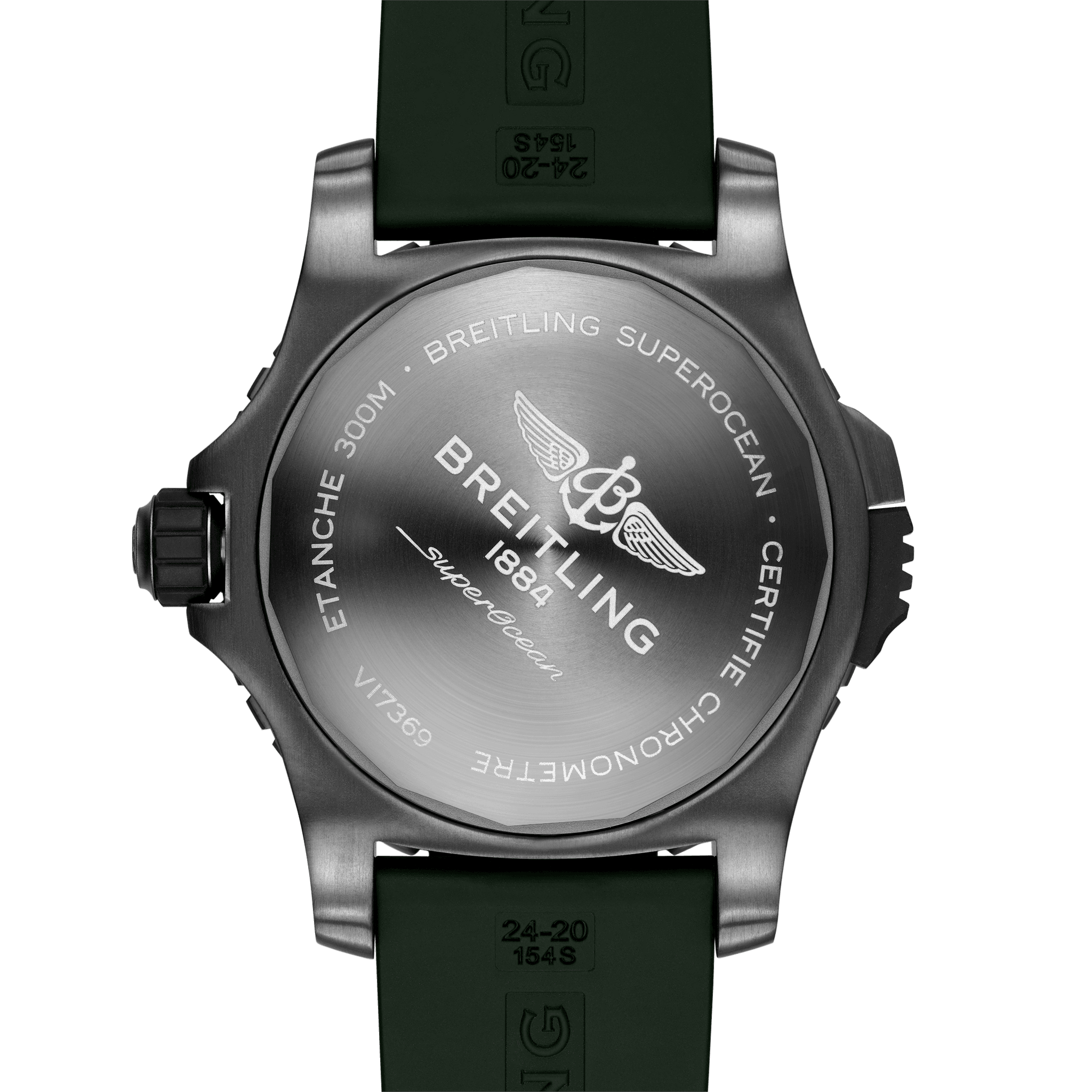 Крупная, объемная и неординарная модель Superocean Automatic 48 V17369241L1S2 специально разработана для самых требовательных дайверов. Благодаря специальному фиксатору керамического безеля и специальному корпусу из титана и мягкого железа эта модель позволит Вам безопасно изучать морские глубины. Superocean Automatic 48 выполнены в очень крупном титановом корпусе с высокопрочным углеродным покрытием (DLC) диаметром 48 мм, они оснащены серым керамическим безелем и темно-синим циферблатом.