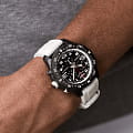 Материал корпуса Breitlight® – прочный сверхлегкий полимер, вес которого в 3,3 раза меньше, чем у титана, и в 5,8 раза меньше, чем у нержавеющей стали. Термически стабильный и гипоаллергенный материал Breitlight® обладает низкой магнитной восприимчивостью, а также высокой стойкостью к царапинам, износу и коррозии. Белый каучуковый браслет с двойной классической застежкой из материала Breitlight®.