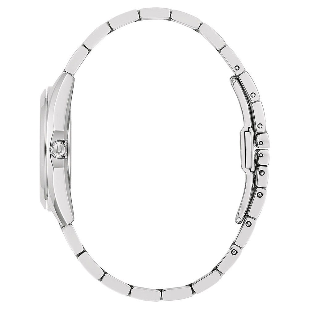 Женские кварцевые часы Bulova Surveyor 96P229 – отражающий идеальное сочетание современного дизайна, надёжности и функциональности. Элегантный облик станет превосходным завершением образа, наделив его индивидуальным характером. Корпус из нержавеющей стали серебристого цвета, диаметром 31 мм идеально сбалансирован и элегантен. Минеральное стеклоМинеральное стеклоМинеральное стекло представляет собой искусственно выращенный минерал кварца. Такое стекло отличается особой устойчивостью к повреждениям и царапинам. Уступает по некоторым качествам сапфировому стеклу. защищает циферблат от царапин и устойчивое к мелким механическим повреждениям. Циферблат украшен бриллиантами. Стальной браслет на застёжке-бабочке с кнопкамиЗастёжка "бабочка"Такой вид застёжки дополняется предохранителями, помогающими избежать случайного раскрытия браслета. Обладают изящным исполнением. обеспечивает комфортное ношение. Стрелки с люминесцентным покрытиемЛюминесцентное покрытиеПозволяет считывать показания времени в темноте. Производители наносят на стрелки, часовые индексы, безель или поверхность циферблата светонакопительный состав, дающий холодное свечение.. Водозащита 30 метров позволит защитить корпус от случайных брызг или капель дождя. Эта модель – отличный выбор для тех, кто ищет сочетание стиля, качества и функциональности. Часы станут не только полезным аксессуаром, но и выразительным элементом вашего имиджа.