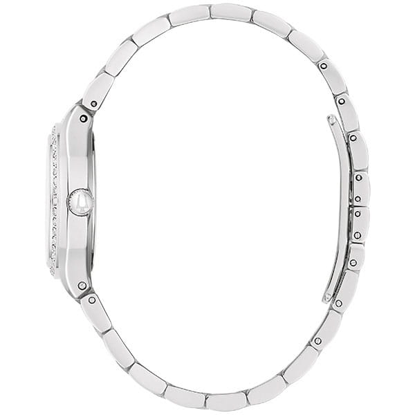 Женские кварцевые часы Bulova Surveyor 96R245 – отражающий идеальное сочетание современного дизайна, надёжности и функциональности. Элегантный облик станет превосходным завершением образа, наделив его индивидуальным характером. Корпус из нержавеющей стали серебристого цвета, диаметром 31 мм идеально сбалансирован и элегантен. Минеральное стеклоМинеральное стеклоМинеральное стекло представляет собой искусственно выращенный минерал кварца. Такое стекло отличается особой устойчивостью к повреждениям и царапинам. Уступает по некоторым качествам сапфировому стеклу. защищает циферблат от царапин и устойчивое к мелким механическим повреждениям. Неподвижный безельБезельВнешний ободок, закрепляющий стекло. В спортивных часах так называется поворотное кольцо с делениями на циферблате, выполняет роль таймера – замеряет отрезки времени на шкале. Неподвижный безель – элемент декора. Однонаправленно вращающийся безель на дайверских часах позволяет фиксировать моменты погружения и выныривания на поверхность. украшен 22 бриллиантами. Стальной браслет на застёжке-бабочке с кнопкамиЗастёжка "бабочка"Такой вид застёжки дополняется предохранителями, помогающими избежать случайного раскрытия браслета. Обладают изящным исполнением. обеспечивает комфортное ношение. Окошко даты находится в положении 6 часов. Водозащита 30 метров позволит защитить корпус от случайных брызг или капель дождя. Эта модель – отличный выбор для тех, кто ищет сочетание стиля, качества и функциональности. Часы станут не только полезным аксессуаром, но и выразительным элементом вашего имиджа.