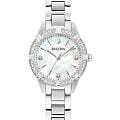 Женские кварцевые часы Bulova Sutton 96R253 – отражающий идеальное сочетание современного дизайна, надёжности и функциональности. Элегантный облик станет превосходным завершением образа, наделив его индивидуальным характером. Корпус из нержавеющей стали серебристого цвета, диаметром 28 мм идеально сбалансирован и элегантен. Сапфировое стеклоСапфировое стеклоПрочный и надёжный материал из кристалла сапфира синтетического происхождения, характеризующийся особой твёрдостью и устойчивостью к царапинам и повреждениям. защищает циферблат от царапин и устойчивое к механическим повреждениям. БезельБезельВнешний ободок, закрепляющий стекло. В спортивных часах так называется поворотное кольцо с делениями на циферблате, выполняет роль таймера – замеряет отрезки времени на шкале. Неподвижный безель – элемент декора. Однонаправленно вращающийся безель на дайверских часах позволяет фиксировать моменты погружения и выныривания на поверхность. украшен бриллиантами. Стальной браслет на застёжке-бабочке с кнопкамиЗастёжка "бабочка"Такой вид застёжки дополняется предохранителями, помогающими избежать случайного раскрытия браслета. Обладают изящным исполнением. обеспечивает комфортное ношение. Водозащита 30 метров позволит защитить корпус от случайных брызг или капель дождя. Эта модель – отличный выбор для тех, кто ищет сочетание стиля, качества и функциональности. Часы станут не только полезным аксессуаром, но и выразительным элементом вашего имиджа.