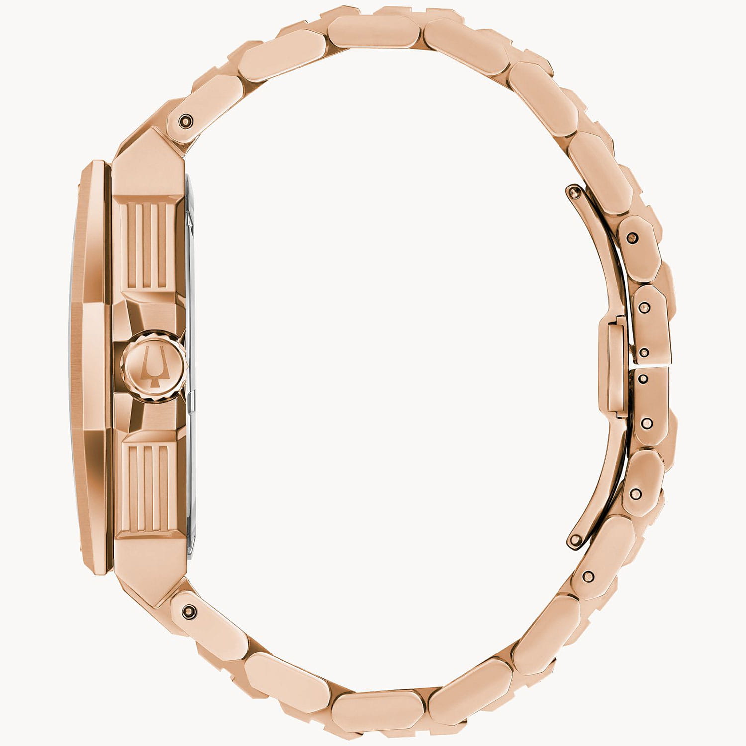 Мужские кварцевые наручные часы Bulova Precisionist 97D129 – отражающий идеальное сочетание современного дизайна, надёжности и функциональности. Корпус из нержавеющей стали с IP-покрытиемIP-покрытиеМетод ионного напыления. Демонстрирует повышенную устойчивость к истиранию, окислению и химическим веществам. Под воздействием высокого давления и температуры около 1500°C молекулы металла надёжно соединяются с частицами корпуса часов. цвета розового золота, диаметром 47 мм идеально сбалансирован и надежен. Сапфировое стеклоСапфировое стеклоПрочный и надёжный материал из кристалла сапфира синтетического происхождения, характеризующийся особой твёрдостью и устойчивостью к царапинам и повреждениям. защищает циферблат от царапин и устойчивое к механическим повреждениям. Апертура даты в позиции 3 часов. Черный циферблат украшен бриллиантами в местах часовых меток. Стальной браслет на застёжке-бабочке с кнопкамиЗастёжка "бабочка"Такой вид застёжки дополняется предохранителями, помогающими избежать случайного раскрытия браслета. Обладают изящным исполнением. обеспечивает комфортное ношение. Водозащита 100 метров позволит плавать, нырять и заниматься другими водными видами спорта. Стрелки и метки с люминесцентным покрытиемЛюминесцентное покрытиеПозволяет считывать показания времени в темноте. Производители наносят на стрелки, часовые индексы, безель или поверхность циферблата светонакопительный состав, дающий холодное свечение. позволяющие легко определять время даже в темноте. Заводная головка с защитой. Эта модель – отличный выбор для тех, кто ищет сочетание стиля, качества и функциональности. Часы станут не только полезным аксессуаром, но и выразительным элементом вашего имиджа.