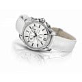 На метке 12 часов размещено 3 бриллианта оттенка Top Wesselton, безель также декорирован драгоценными камнями. ХронографХронографФункция позволяет измерять отрезки времени с особой точностью: часы, минуты, секунды. Верным признаком хронографа является наличие на циферблате 3 дополнительных окошек-счётчиков. характеризуется высокой точностью хода благодаря швейцарскому кварцевому механизму ETA G10.211. Ремешок выполнен из натуральной кожи.