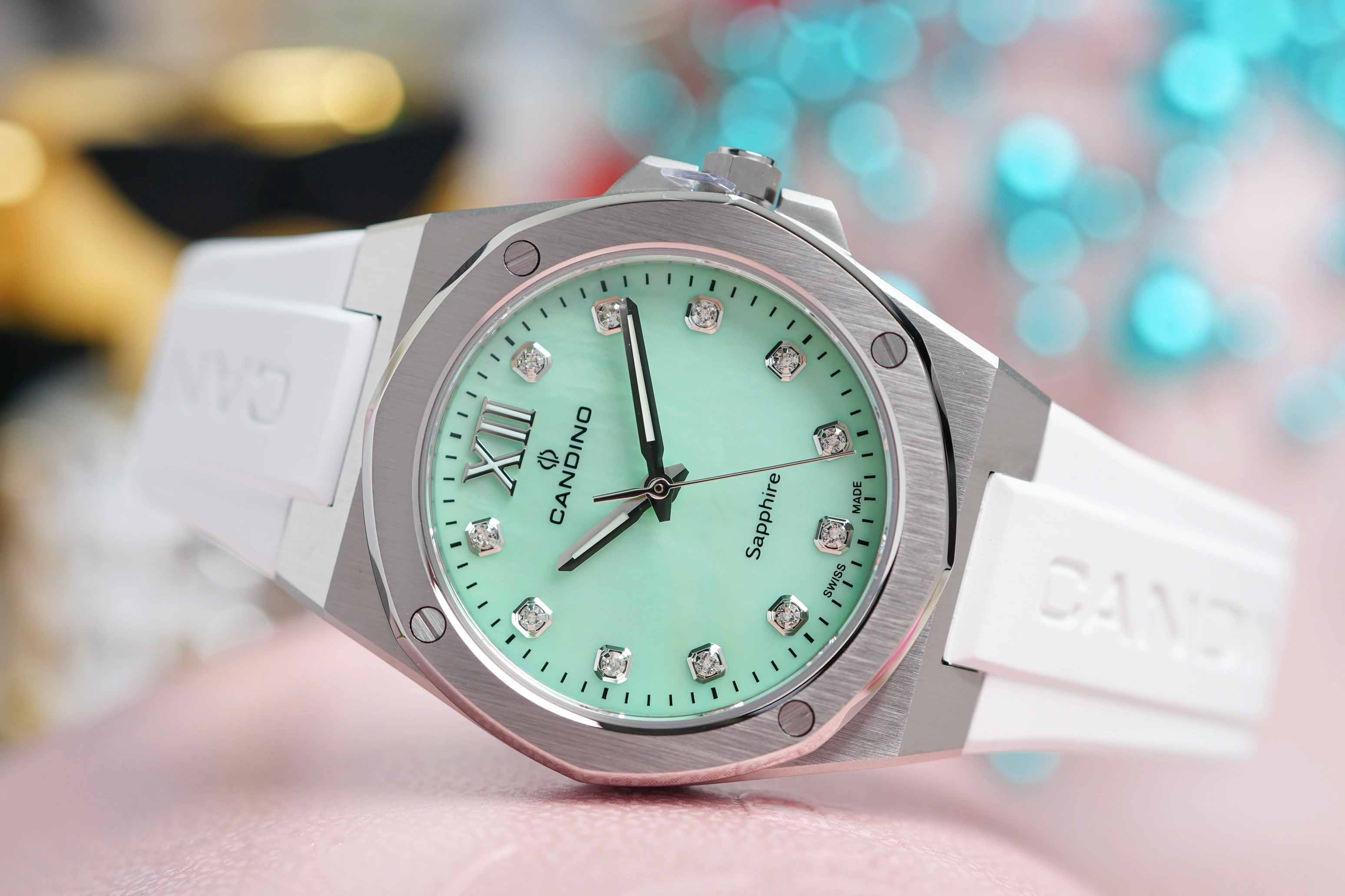 Изысканные женские часы Candino Lady Elegance C4777/9, которые объединяют в себе элегантность и функциональность. Эти часы оснащены кварцевым механизмом, обеспечивающим точное отображение времени, включая часы, минуты и секунды. Корпус выполнен из высококачественной нержавеющей стали, что гарантирует долговечность и стойкость к внешним воздействиям. Сапфировое стеклоСапфировое стеклоПрочный и надёжный материал из кристалла сапфира синтетического происхождения, характеризующийся особой твёрдостью и устойчивостью к царапинам и повреждениям. защищает циферблат, добавляя изделию дополнительную прочность и устойчивость к царапинам. Каучуковый белый ремешок на стандартной застежке гармонично сочетается с общим дизайном, обеспечивая комфортное и надежное прилегание на запястье. Стрелки часов с люминесцентным покрытиемЛюминесцентное покрытиеПозволяет считывать показания времени в темноте. Производители наносят на стрелки, часовые индексы, безель или поверхность циферблата светонакопительный состав, дающий холодное свечение., что облегчает чтение времени даже в условиях слабого освещения. С водонепроницаемостью до 50 метров эти часы подходят для повседневной носки и выдержат воздействие воды при мытье рук или дожде. Эти часы станут идеальным дополнением к вашему гардеробу, добавляя нотку утонченности и стиля в любой образ.