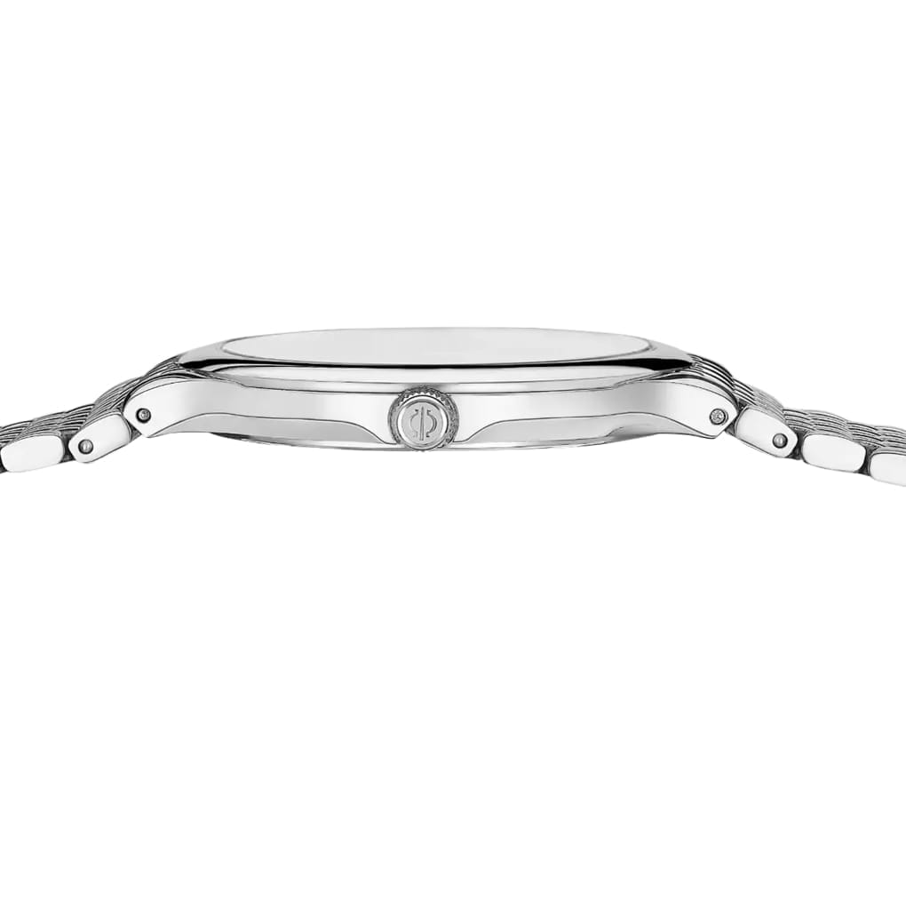 Мужские кварцевые часы Candino Series 1947 — это сочетание минимализма, швейцарского качества и современного дизайна. Корпус диаметром 39 мм и толщиной всего 6 мм выполнен из нержавеющей стали 316L, что делает часы особенно лёгкими и комфортными в ношении. Циферблат зелёного цвета оформлен двумя стрелками, без индикации даты, что придаёт дизайну чистоту и элегантность. Циферблат защищён сапфировым стекломСапфировое стеклоПрочный и надёжный материал из кристалла сапфира синтетического происхождения, характеризующийся особой твёрдостью и устойчивостью к царапинам и повреждениям., устойчивым к царапинам. Механизм — кварцевый произведённый в Швейцарии. Часы оснащены стальным браслетом с застёжкой «бабочка» с кнопкамиЗастёжка "бабочка"Такой вид застёжки дополняется предохранителями, помогающими избежать случайного раскрытия браслета. Обладают изящным исполнением. . Водонепроницаемость 50 м позволяет использовать часы в повседневных условиях. Гарантия — 2 года. Идеальный выбор для тех, кто ценит лаконичный стиль, точность и надёжность.