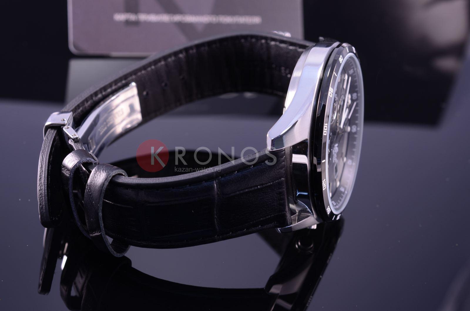 Стильный, мужские наручные часы Casio Edifice надежные и практичные. Кварцевый японский механизм Miyota. Точность хода не хуже -10 +15 сек./в месяц. Часы оснащены функцией хронографа. Циферблат черного цвета с контрастными, позолоченными индексами.Стрелки и индексы с светонакопительным нанесением. Корпус выполнен из нержавеющей стали. Ремешок из натуральной кожи, черного цвета, с удобной застежкой. Минеральное стекло устойчиво к появлению царапин. Водонепроницаемость 100М. В часах можно плавать. Степень водонепроницаемости не является величиной, эквивалентной функциональной рабочей глубине.