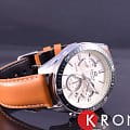 Оригинальный циферблат и чёрный безельБезельВнешний ободок, закрепляющий стекло. В спортивных часах так называется поворотное кольцо с делениями на циферблате, выполняет роль таймера – замеряет отрезки времени на шкале. Неподвижный безель – элемент декора. Однонаправленно вращающийся безель на дайверских часах позволяет фиксировать моменты погружения и выныривания на поверхность. с защитным IP-покрытиемIP-покрытиеМетод ионного напыления. Демонстрирует повышенную устойчивость к истиранию, окислению и химическим веществам. Под воздействием высокого давления и температуры около 1500°C молекулы металла надёжно соединяются с частицами корпуса часов. превосходно сочетаются с серебристыми переливами ударопрочного корпусаУдаропрочный корпусМеханизм заключён в корпус, выполненный из современных материалов, устойчивых к ударам, механическим повреждениям и падению с высоты: инновационный пластик, карбон, нержавеющая сталь, титан.. Приметный аксессуар отлично дополнит брендовый деловой костюм. Работу часов обеспечивает японский кварцевый калибр Miyota с точностью хода +/- 30 секунд в месяц. Батарейка характеризуется 3-летним сроком службы. Коричневый ремешок из натуральной кожи. Люминесцентная подсветкаЛюминесцентное покрытиеПозволяет считывать показания времени в темноте. Производители наносят на стрелки, часовые индексы, безель или поверхность циферблата светонакопительный состав, дающий холодное свечение.. Закручивающаяся задняя крышка. Заводная головка с системой защиты. Закаленное минеральное стекло. Водонепроницаемость при давлении до 10 бар. ХронографХронографФункция позволяет измерять отрезки времени с особой точностью: часы, минуты, секунды. Верным признаком хронографа является наличие на циферблате 3 дополнительных окошек-счётчиков., секундомер, индикация числа. Габариты: 53 x 47 x 12,3 мм.