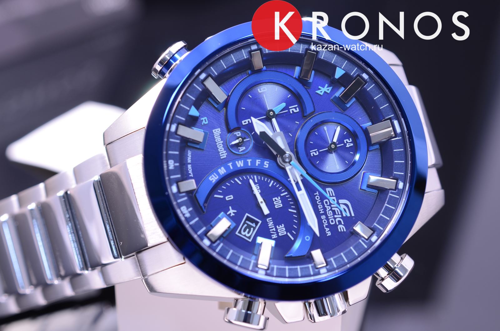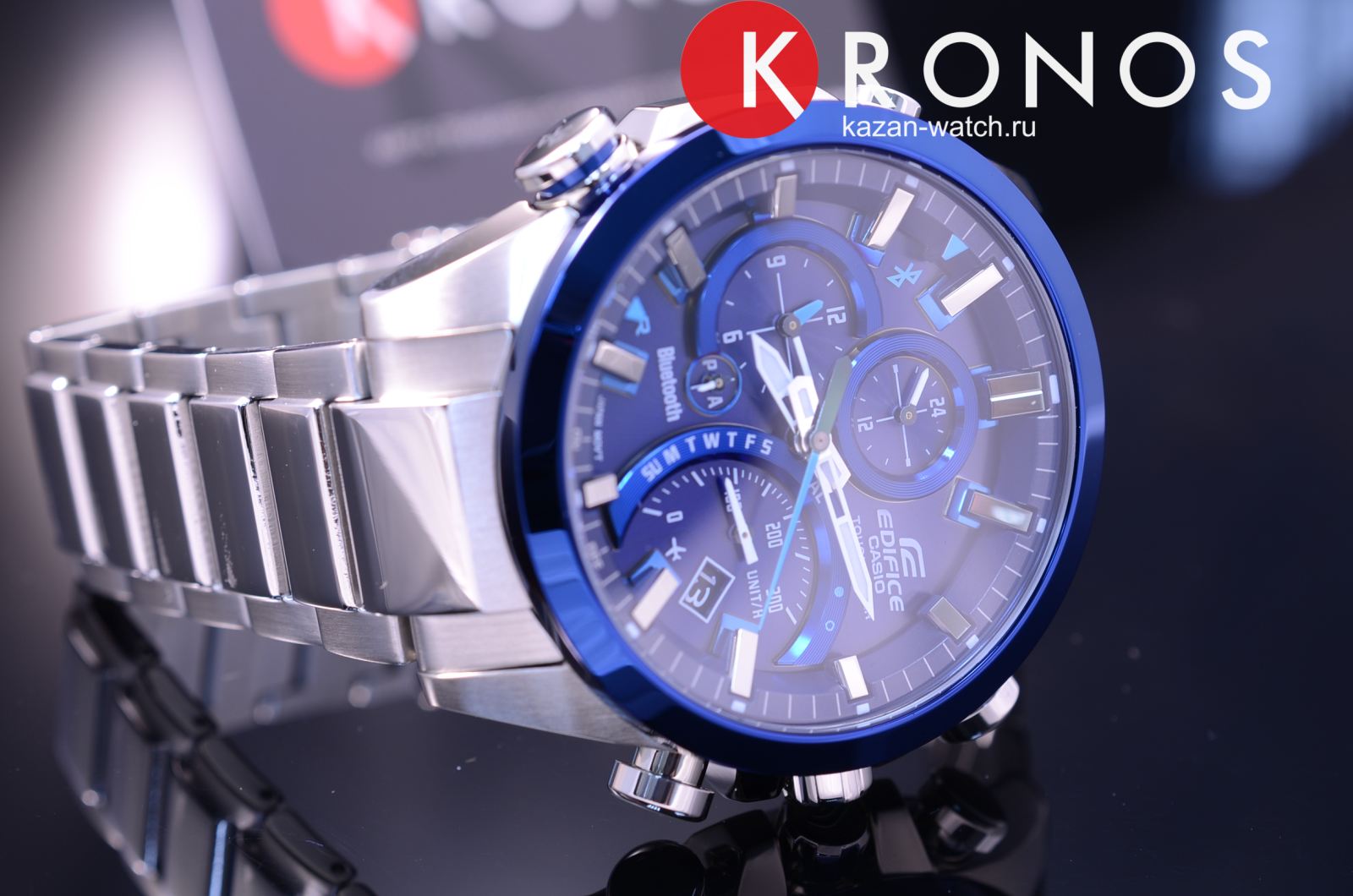 Мужские наручные часы Casio Edifice надежные и практичные. Солнечная подзаряжающаяся батарейка обеспечивает питание часов для работы. Часы оснащены функциями: Авиарежим (режим оффлайн). Часы переключаются в режим оффлайн нажатием кнопки. С помощью этой функции можно отключить радио- и GPS-приемник на время перелета. Функция поиска телефона. Не помните, куда положили смартфон. При нажатии кнопки на ваших часах смартфон подает звуковой сигнал.