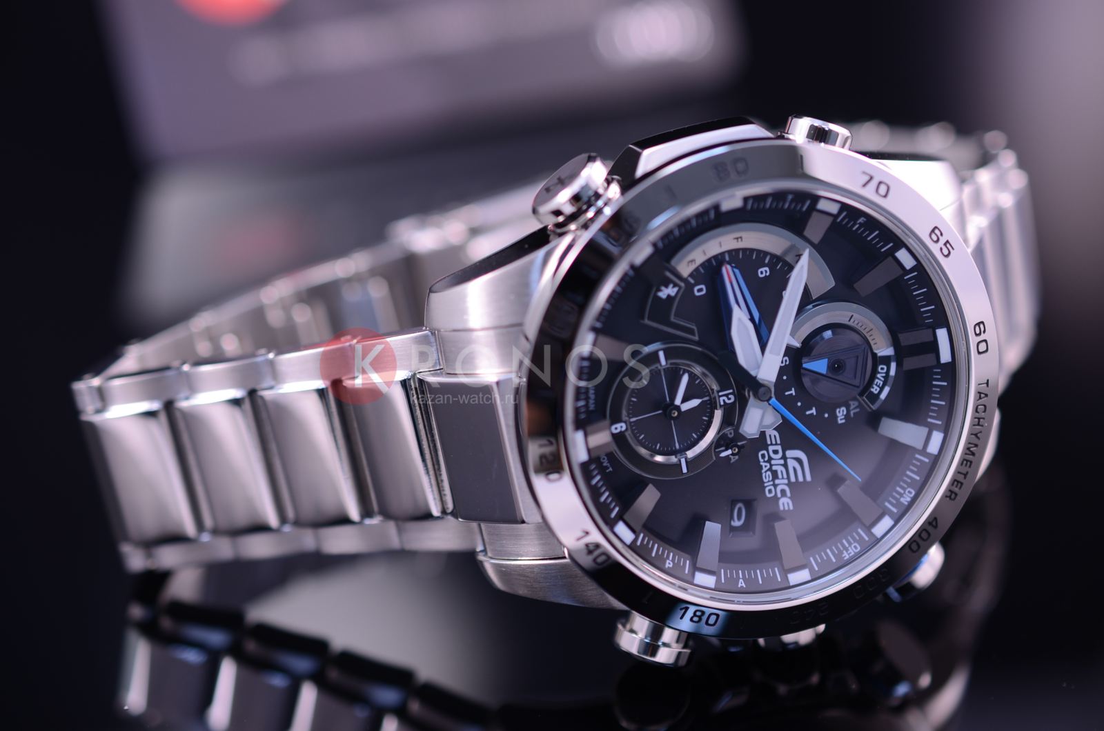 Японские мужские функциональные часы представлены в модельном ряду коллекции Edifice, автомобильный дизайн и современные технологии никого не оставят равнодушным.