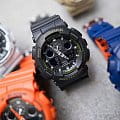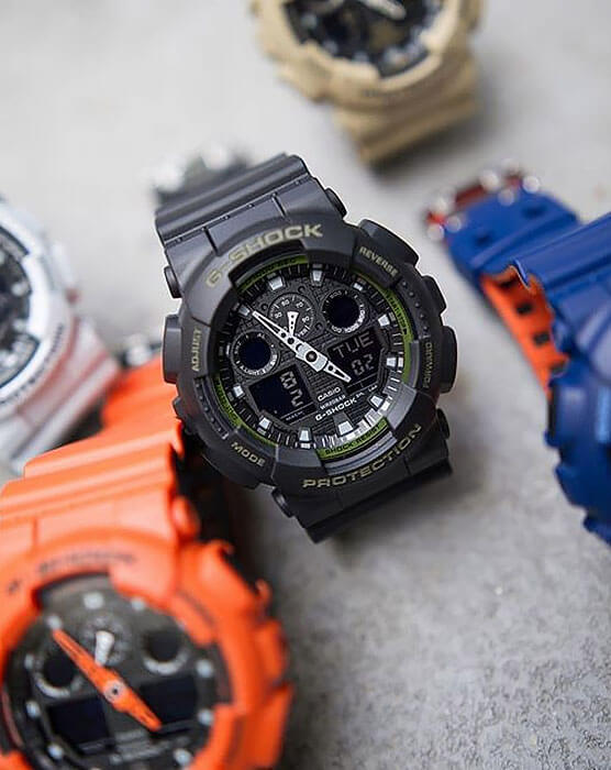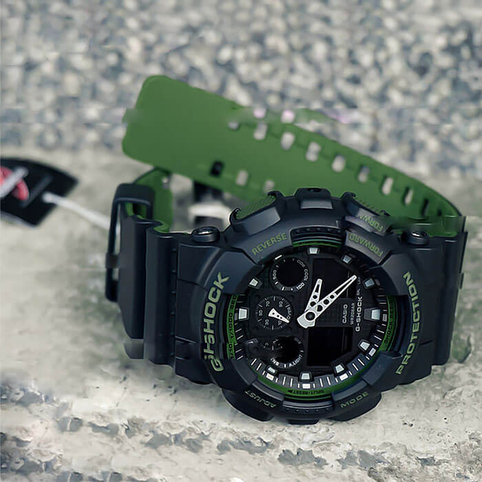 Часы в чёрном исполнении подойдут к любой одежде, оригинально смотрятся тёмно-зелёные детали и контрастные перфорированные стрелки. Аксессуар "Three-eye" с 3 характерными счётчиками в верхней части отличаются противоударным корпусомУдаропрочный корпусМеханизм заключён в корпус, выполненный из современных материалов, устойчивых к ударам, механическим повреждениям и падению с высоты: инновационный пластик, карбон, нержавеющая сталь, титан., выдерживающим максимальные нагрузки. Японский кварцевый калибр с точностью хода +/- 15 секунд в месяц. Срок службы батарейки составляет 3 года. Минеральное стекло устойчиво к царапинам. Минимизация влияния магнитного поля. Водонепроницаемость 200 метров. Дополнения: будильник с возможностью повтора, расчёт средней скорости по пройденному маршруту, таймер обратного отсчёта, хронографХронографФункция позволяет измерять отрезки времени с особой точностью: часы, минуты, секунды. Верным признаком хронографа является наличие на циферблате 3 дополнительных окошек-счётчиков., автоматический календарь до 2099 года, мировое времяМировое время Полезное часовое усложнение, отображающее время в основных городах и известных областях по всему миру, оно связано с часовыми поясами, удобно для путешественников и бизнесменов. , секундомер. Габариты: 55 x 51,2 x 16,9 мм.