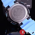 Оригинально смотрится двухцветный ремешок с внутренней стороной ярко-голубого цвета. Многоуровневый циферблат защищает закаленное минеральное стекло, устойчивое к царапинам. Японский кварцевый механизм получает питание от аккумулятора, срок службы которого составляет 2 года. Противоударный корпусУдаропрочный корпусМеханизм заключён в корпус, выполненный из современных материалов, устойчивых к ударам, механическим повреждениям и падению с высоты: инновационный пластик, карбон, нержавеющая сталь, титан. из полимерного пластика. Водонепроницаемость 20 бар. Устранение влияния магнитного поля. Светодиодная подсветкаСветодиодная подсветкаСветодиодная или LED-подсветка обеспечивает появление яркого холодного свечения за счёт LED-элементов - маленьких лампочек. Они потребляют минимальное количество энергии, чаще всего можно встретить 1 светодиод, в нижней части циферблата.. Секундомер, хронографХронографФункция позволяет измерять отрезки времени с особой точностью: часы, минуты, секунды. Верным признаком хронографа является наличие на циферблате 3 дополнительных окошек-счётчиков., расчёт средней скорости пройденного пути, календарь до 2099 года, мировое времяМировое время Полезное часовое усложнение, отображающее время в основных городах и известных областях по всему миру, оно связано с часовыми поясами, удобно для путешественников и бизнесменов. , таймер, будильник. Габариты: 55 x 51,2 x 16,9 мм.