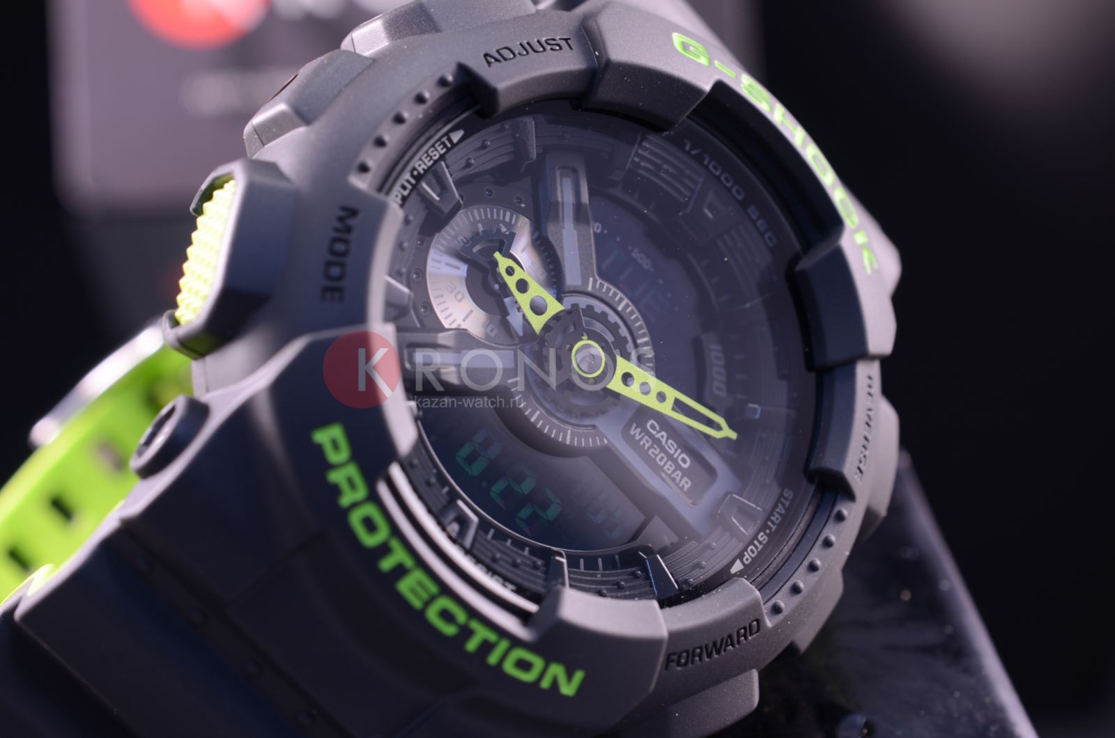 Аксессуар в спортивном стиле отличается необычным многоуровневым циферблатом, крупными деталями, оригинальными перфорированными стрелками. Привлекательности добавляет ремешок с ярко-зеленой внутренней стороной. Наручные часы могут похвастаться противоударным корпусомУдаропрочный корпусМеханизм заключён в корпус, выполненный из современных материалов, устойчивых к ударам, механическим повреждениям и падению с высоты: инновационный пластик, карбон, нержавеющая сталь, титан. из полимерного пластика, материал устойчив к повреждениям любого характера. Японский высокоточный кварцевый механизм. Аккумулятор с 2-годичным сроком службы. Светодиодная подсветкаСветодиодная подсветкаСветодиодная или LED-подсветка обеспечивает появление яркого холодного свечения за счёт LED-элементов - маленьких лампочек. Они потребляют минимальное количество энергии, чаще всего можно встретить 1 светодиод, в нижней части циферблата.. Надёжное минеральное стекло. Защита от влияния магнитного поля. Водостойкость 20 бар. ХронографХронографФункция позволяет измерять отрезки времени с особой точностью: часы, минуты, секунды. Верным признаком хронографа является наличие на циферблате 3 дополнительных окошек-счётчиков., автоматический календарь, таймер, функция мирового времениМировое время Полезное часовое усложнение, отображающее время в основных городах и известных областях по всему миру, оно связано с часовыми поясами, удобно для путешественников и бизнесменов. - 29 часовых поясов, ежечасный сигнал, будильник, возможность высчитать среднюю скорость пройденного расстояния, секундомер со звуковым сигналом, UTCUTCВсемирное кординационное время, не имеющее привязки к географическому положению Гринвича, основывается на атомном отсчёте времени. Регулировка времени осуществляется более точно, чем устаревшее GMT.