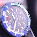 • Указатели даты и дня недели дополнительными стрелками на отметке «12» и «6 часов». В дизайне корпуса сочетаются современный спортивный стиль, элементы оформления часов для подводных погружений, использованы различные цветовые решения.