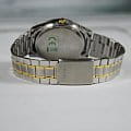Круглый серебристый корпус сделан из гипоаллергенной латуни. Двухцветный привлекательный браслет из нержавеющей стали надежно закрепляется на запястье с помощью раскладывающейся застежки. На слегка блестящем циферблате традиционной формы расположены аккуратный арабские цифры. Миниатюрное окошечко отображает текущую дату. С помощью прочного минерального стекла обеспечивается защита от царапин. Тип механизма - кварцевый. Батарейка работает 3 года. Вес часов равен 71 граммам.