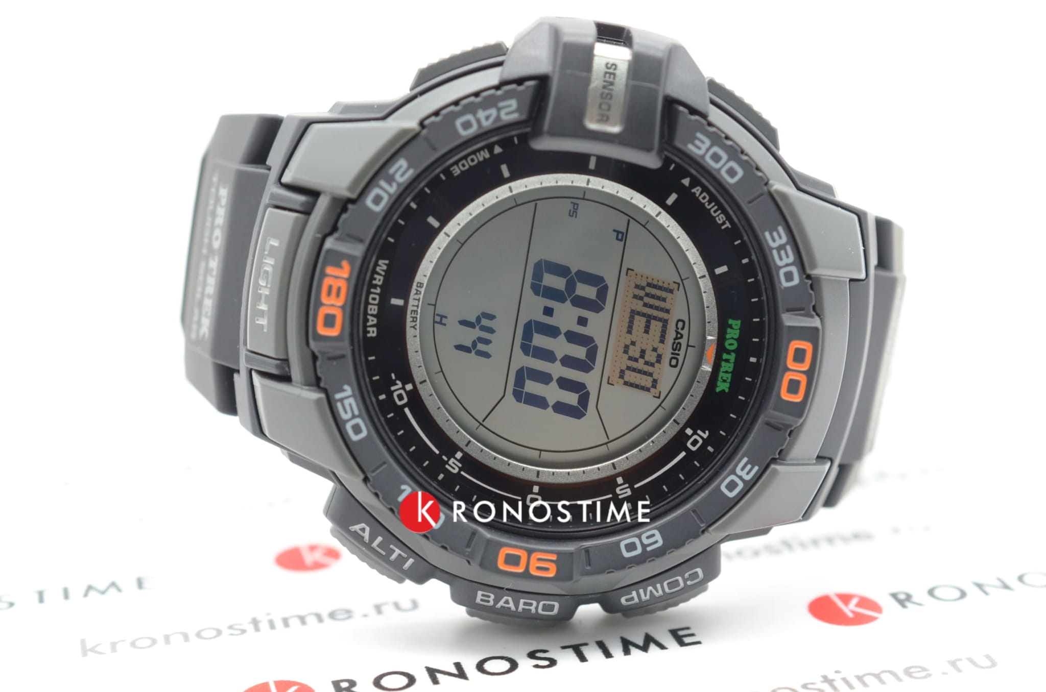 Японский кварцевый механизм получает питание благодаря технологии . Ударопрочный корпусУдаропрочный корпусМеханизм заключён в корпус, выполненный из современных материалов, устойчивых к ударам, механическим повреждениям и падению с высоты: инновационный пластик, карбон, нержавеющая сталь, титан. выполнен из полимерного материала. Светодиодная подсветкаСветодиодная подсветкаСветодиодная или LED-подсветка обеспечивает появление яркого холодного свечения за счёт LED-элементов - маленьких лампочек. Они потребляют минимальное количество энергии, чаще всего можно встретить 1 светодиод, в нижней части циферблата. активируется при повороте запястья. Функции: компас, термометр, мировое времяМировое время Полезное часовое усложнение, отображающее время в основных городах и известных областях по всему миру, оно связано с часовыми поясами, удобно для путешественников и бизнесменов. , отображение восхода и заката солнца, высотомер, барометр, таймер.